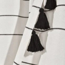 This Farmhouse Boho Stripe Woven Tassel Yarn Dyed Cotton Shower Curtain offers a gender neutral look which can also be used by any age. Kids, teens, and adults alike will enjoy this new take on a classic stripe pattern.