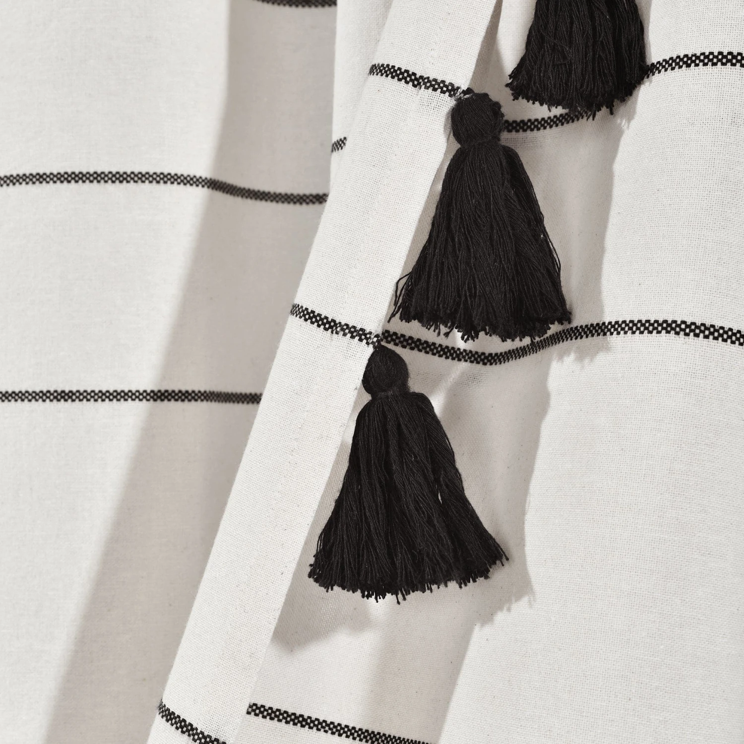 The recycled cotton fabric gives the Farmhouse Boho Stripe Woven Tassel Yarn Dyed Cotton Shower Curtain an excellent hand feel. Because it is a fabric shower curtain, we do recommend using a liner as well (not included).