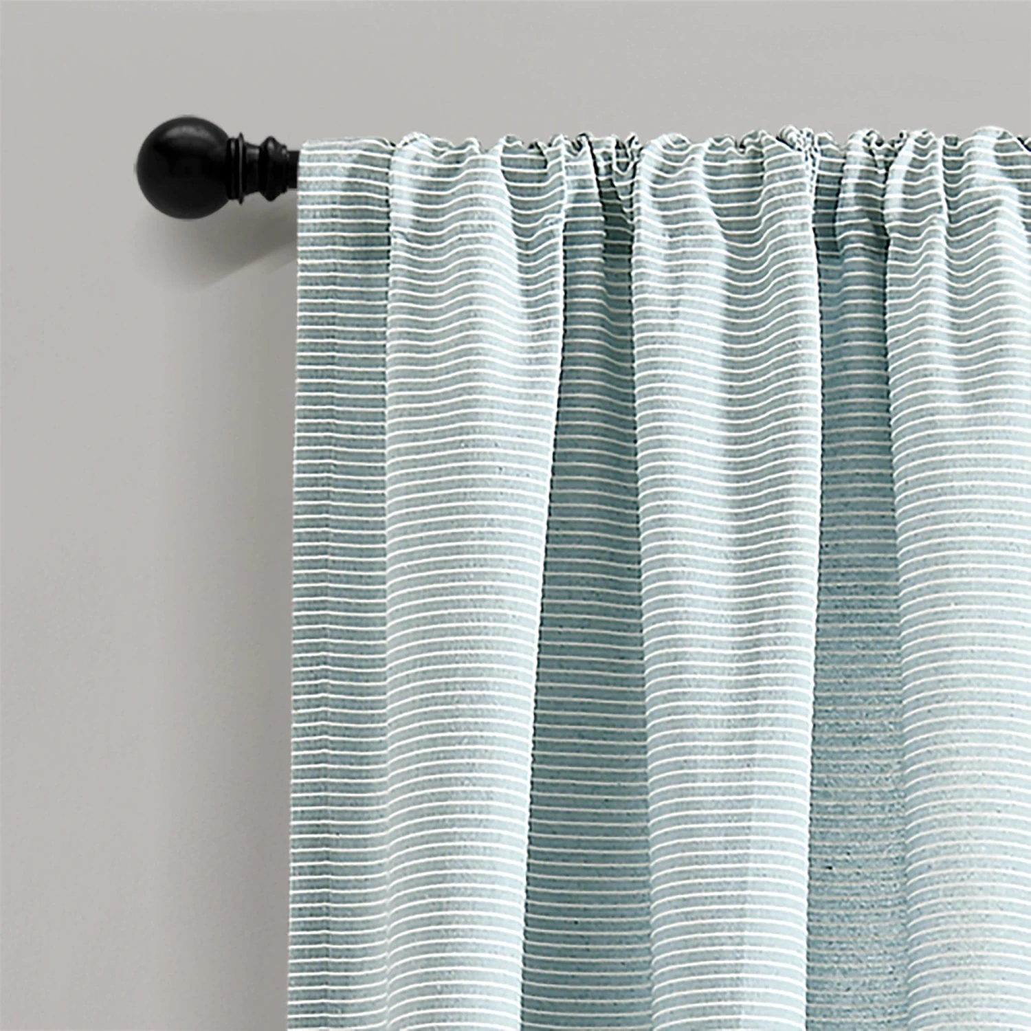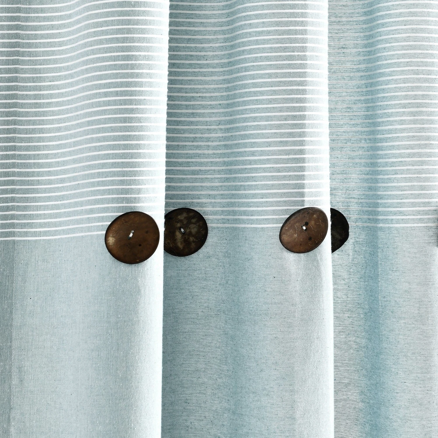 Each panel in our Farmhouse Button Stripe Yarn Dyed Woven Cotton Window Curtain Panel Set measures 40 inches in width, for a combined total width of 80 inches. This style is available in your choice of 84-inch or 95-inch lengths. Some colors may not be offered in all sizes.