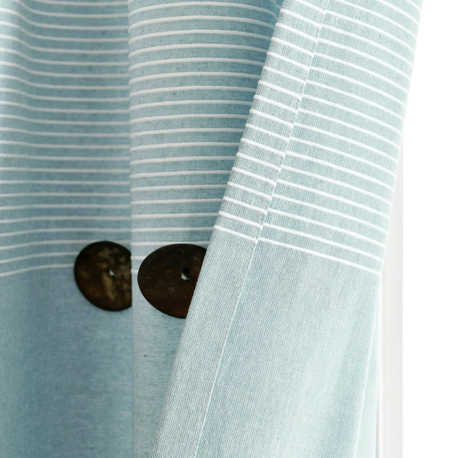 This Farmhouse Button Stripe Yarn Dyed Woven Cotton Window Curtain Panel Set adds charming farmhouse style to your bedroom, living room, home office, nursery or dining room. Color blocking is always in style and we love the details of the stripes and summarys.