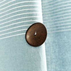This Farmhouse Button Stripe Yarn Dyed Woven Cotton Window Curtain Panel Set in yellow, blue and navy color options contains 100% GRS certified recycled material, certified by GSCI – 1202. The eco-friendly recycled cotton makes this a purchase you can feel good about. It also make the panels soft to the touch for an excellent hand feel.