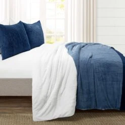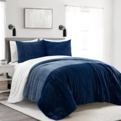 The 100% poly fill ensures comfortable coverage, no matter the season. This plush Farmhouse Color Block Ultra Soft Faux Fur Comforter Set comes with the comforter, and matching sham(s). One shame is included in the Twin size, and two shams are included in the larger sizes. The pillow shams are made with standard envelope openings.