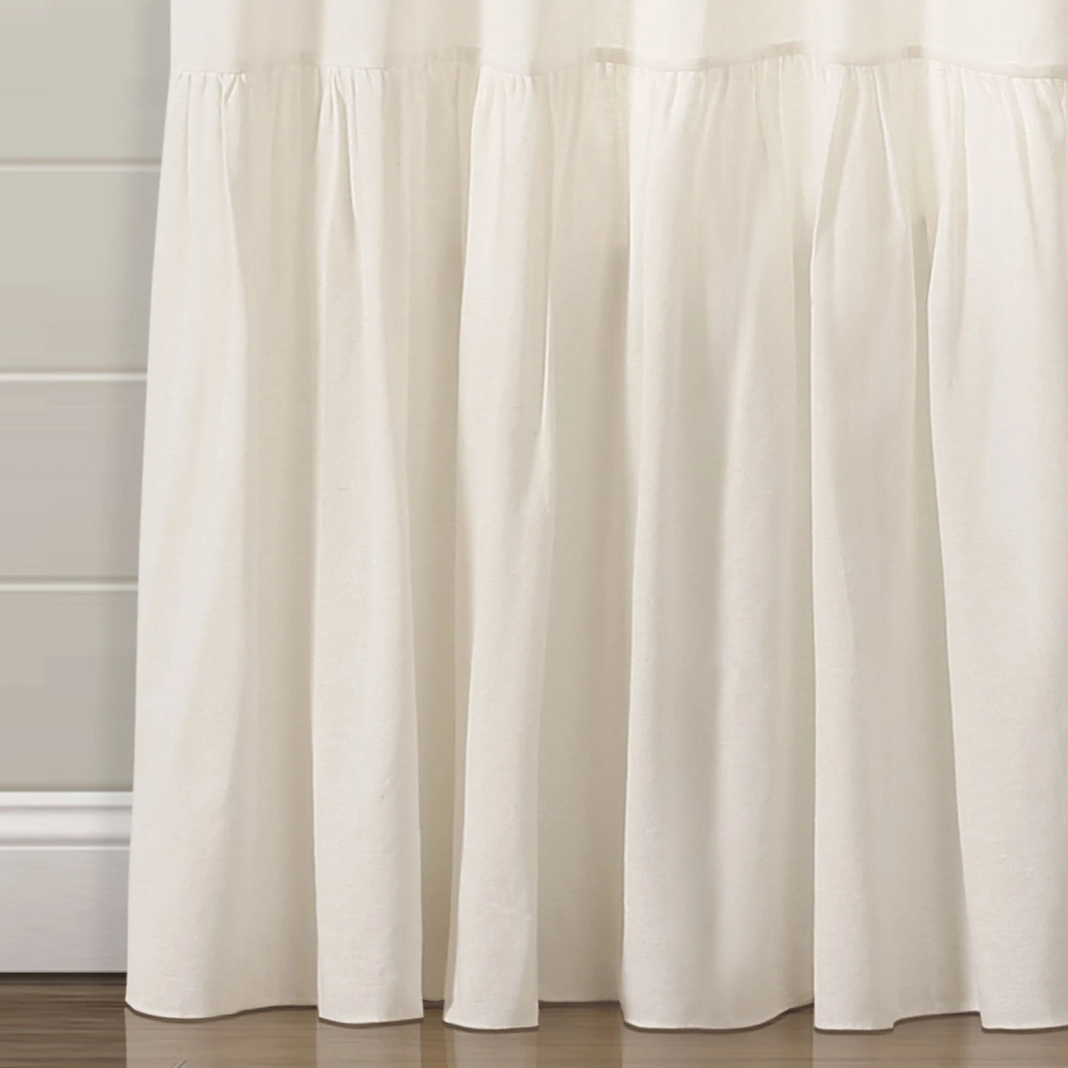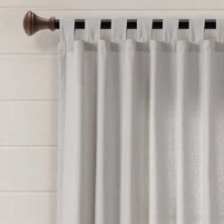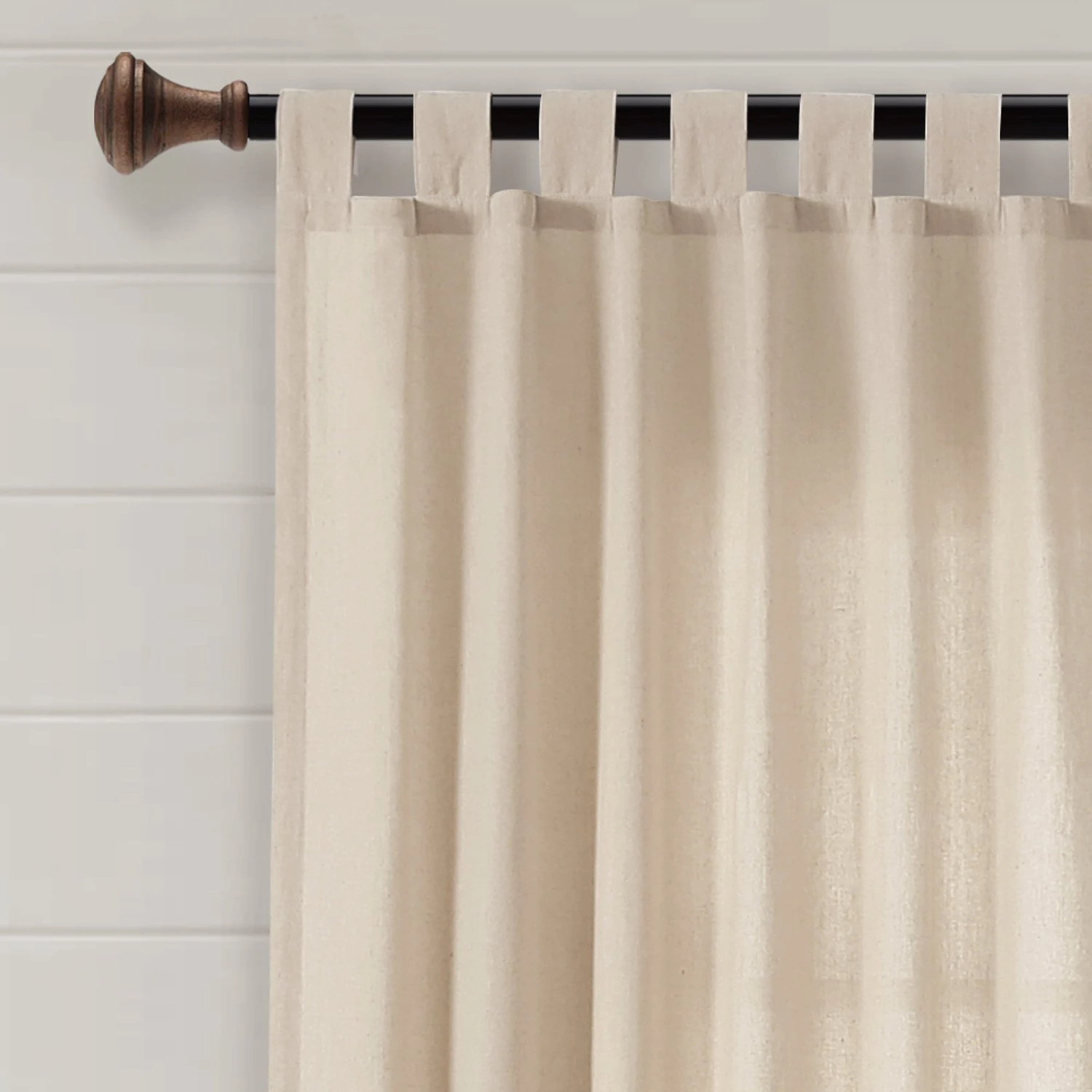 Elevate your farmhouse style with this subtly embellished Farmhouse Faux Linen Tab Top Window Curtain Panel. This window panel features a timeless style with a slight flair towards the bottom. Its simple design brings a homey yet polished look to your space.