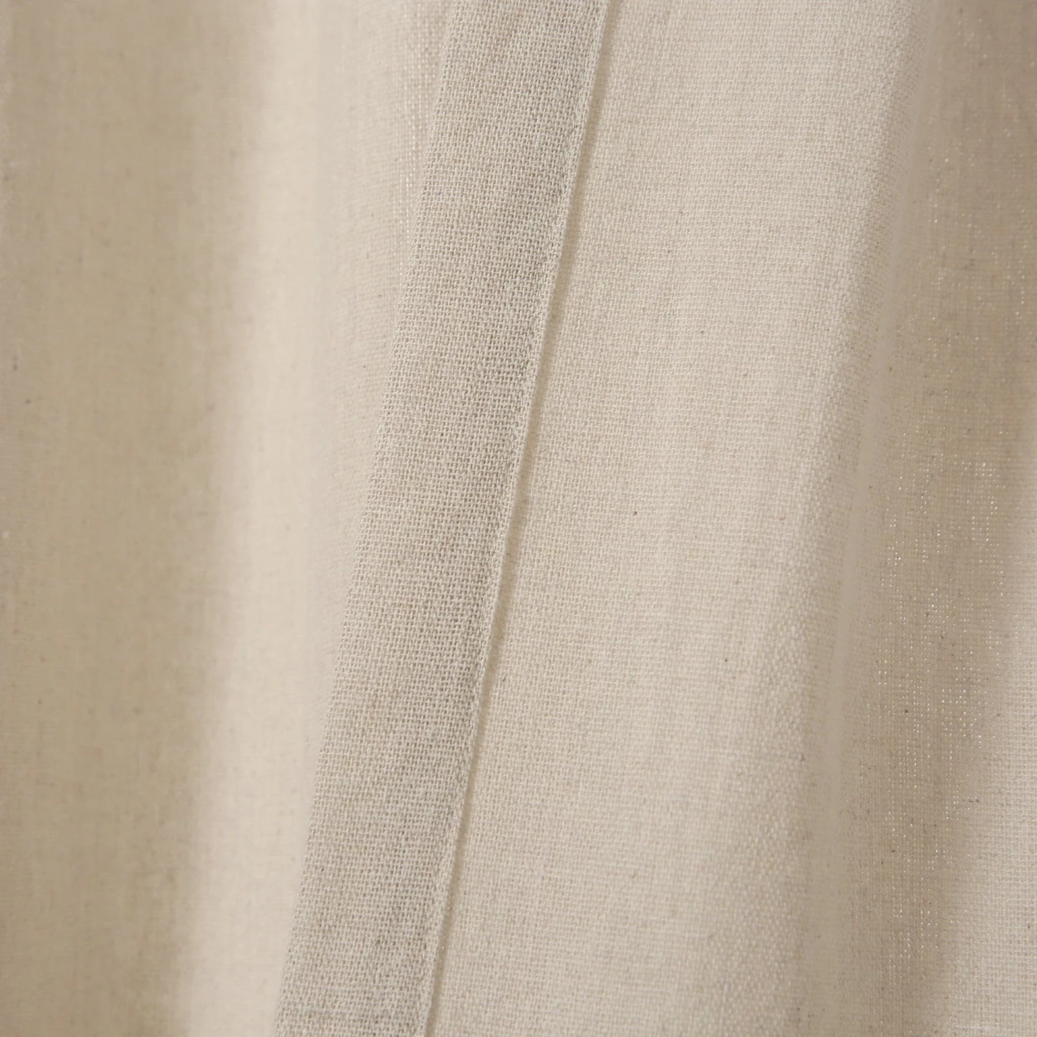 Style your home using simply elegant embellishments like this window curtain panel. This panel features a timeless design and then has a bell bottom styled effect towards the bottom. Our Farmhouse Faux Linen Tab Top Window Curtain Panel is made with unique faux linen fabric. The slight weaving variations are true to this natural fiber blend fabric.