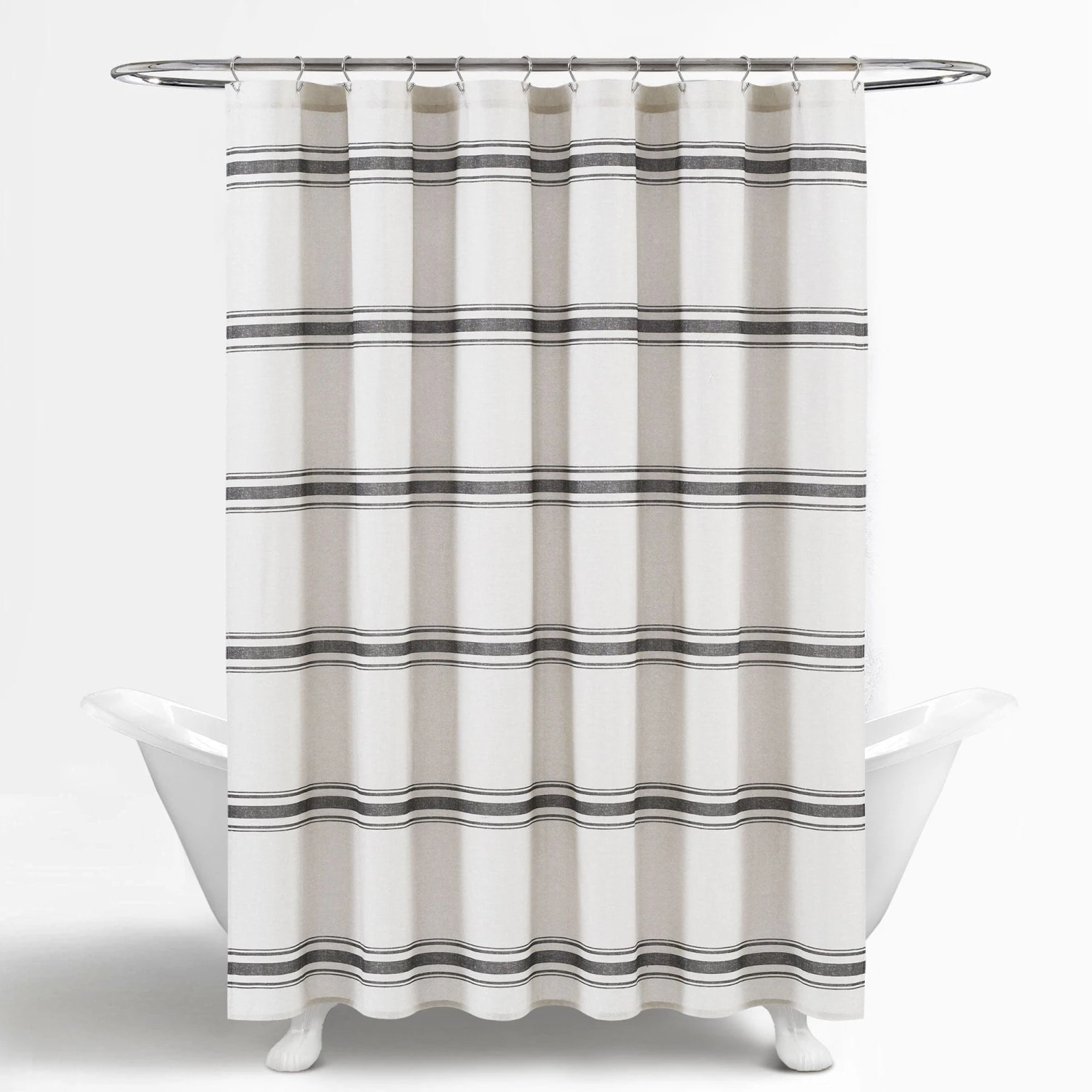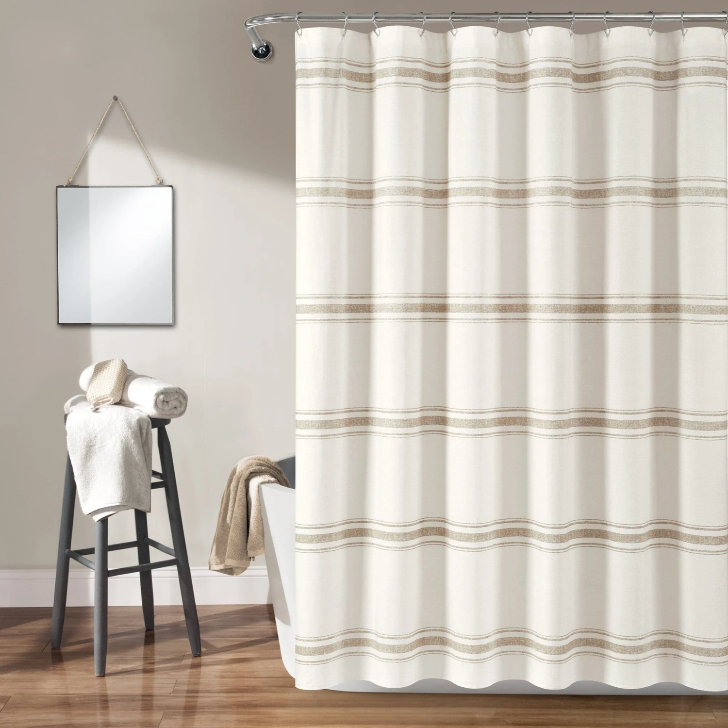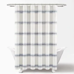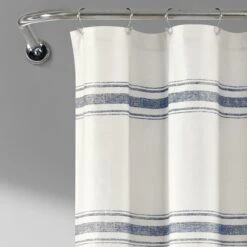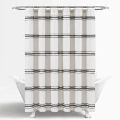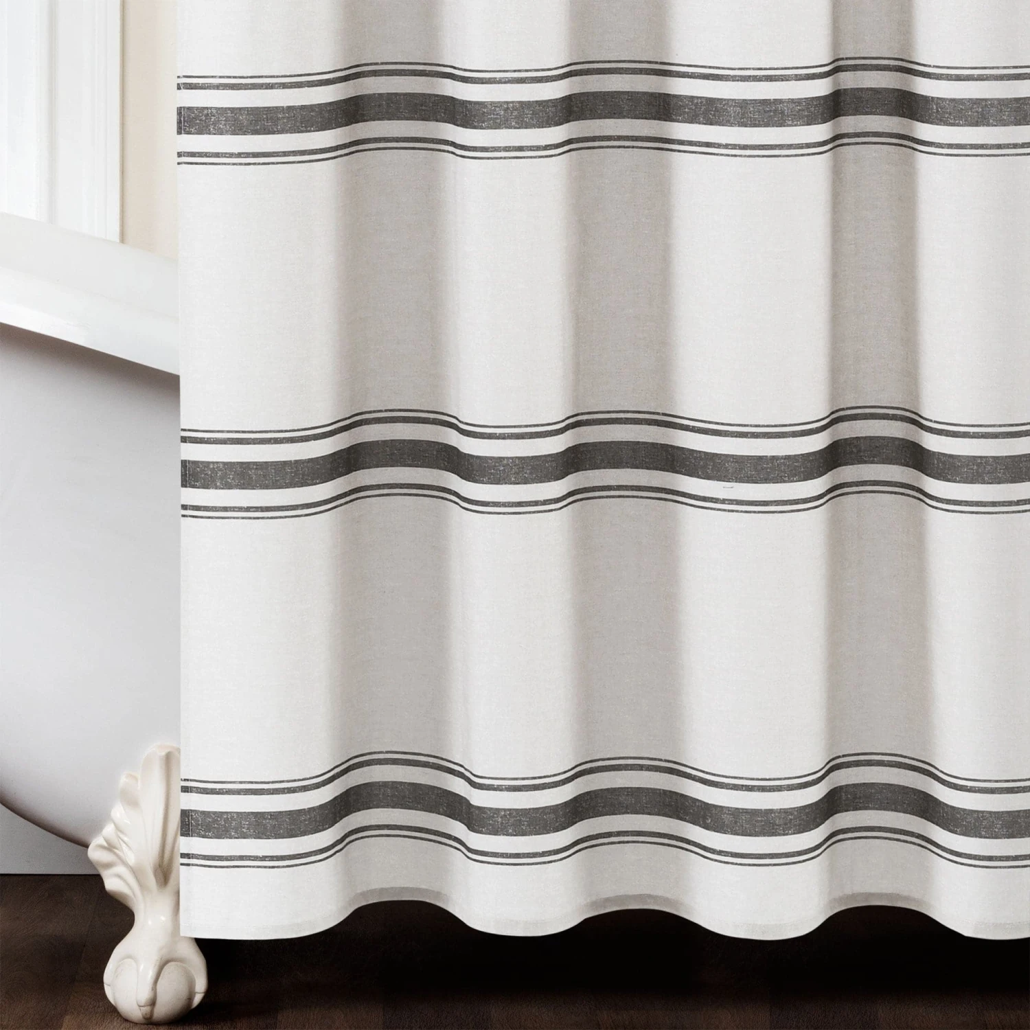 Measuring 72 inches long and 72 inches wide, the Farmhouse Stripe Shower Curtain will fit nearly any bathtub. It hangs easily with any standard shower curtain hooks or rings.