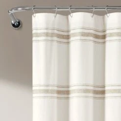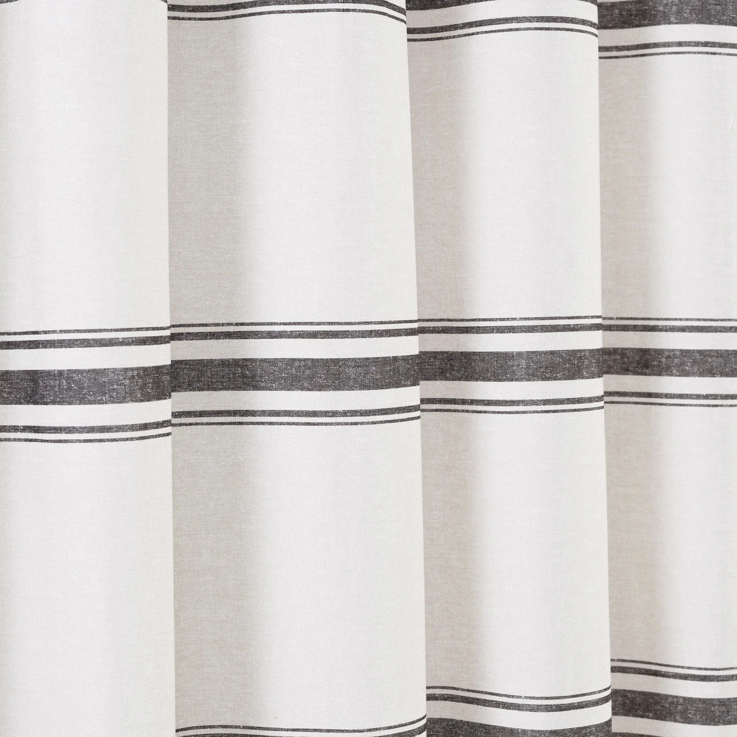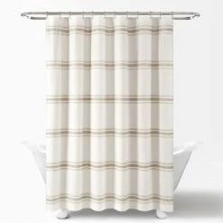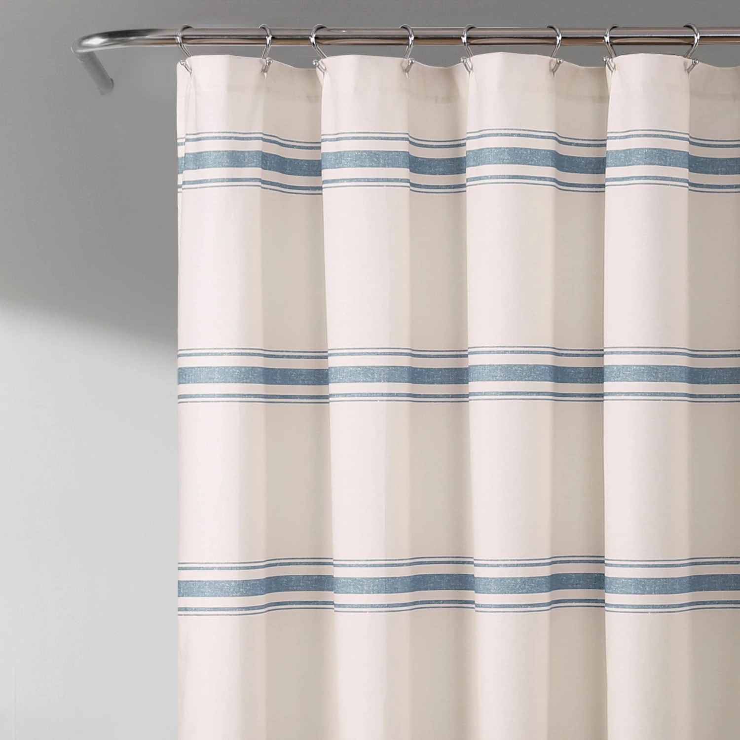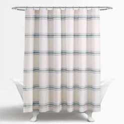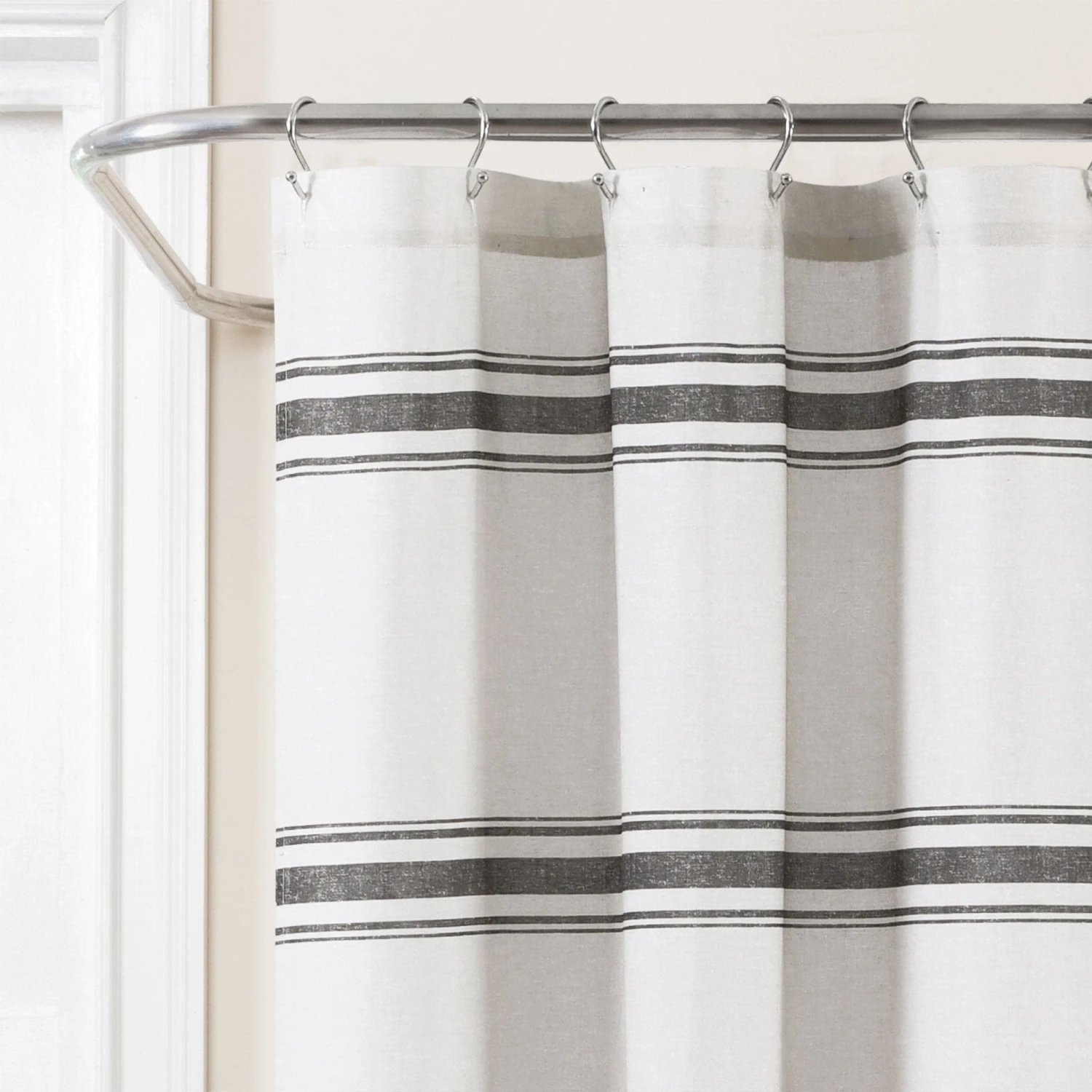 Measuring 72 inches long and 72 inches wide, the Farmhouse Stripe Shower Curtain will fit nearly any bathtub. It hangs easily with any standard shower curtain hooks or rings.