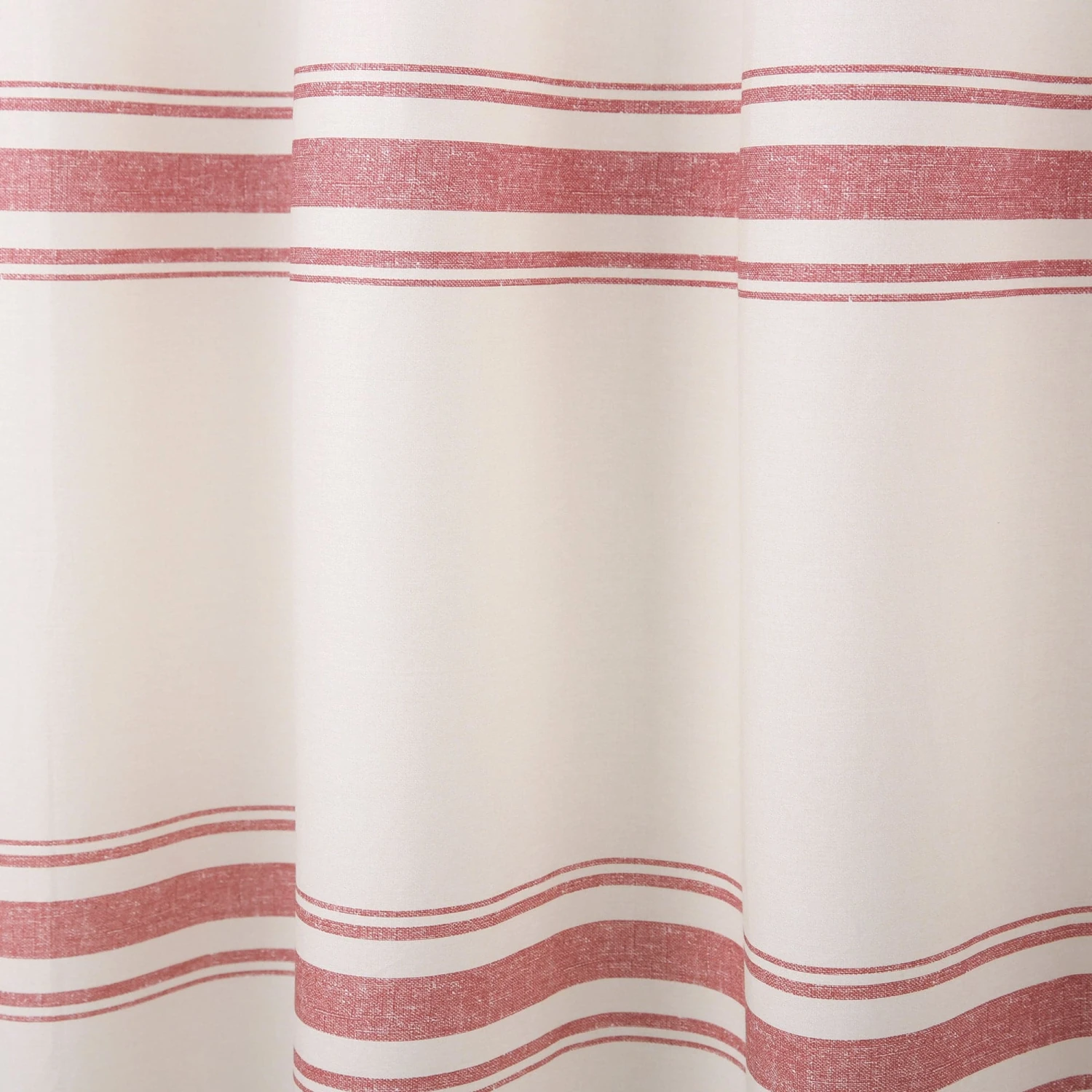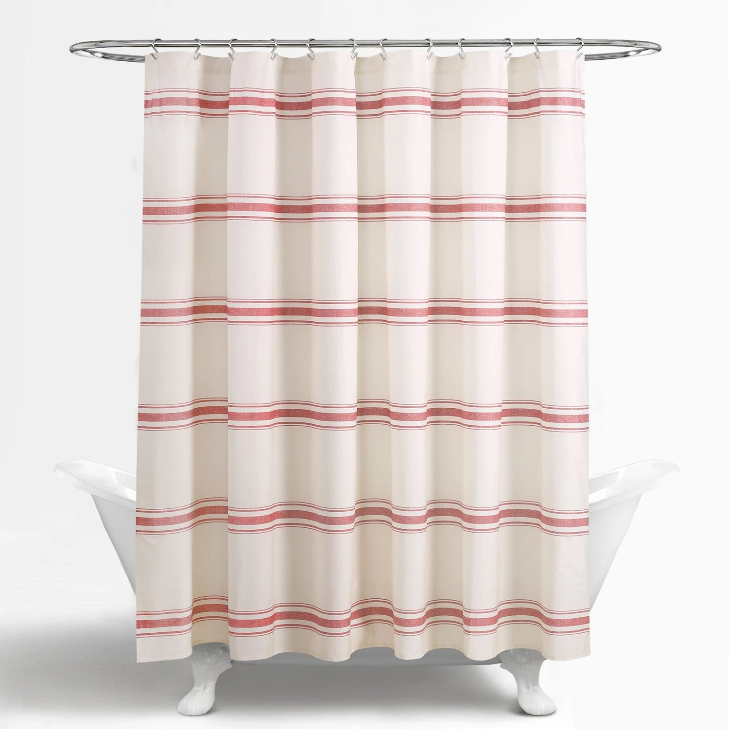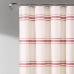 This Farmhouse Stripe Shower Curtain is ideal for your primary bathroom or guest bathroom. It is available in eight color options, including stripes in blue, red, navy, neutral or gray against an ivory/beige background. Any of the color options available will surely enhance your bathroom decor.