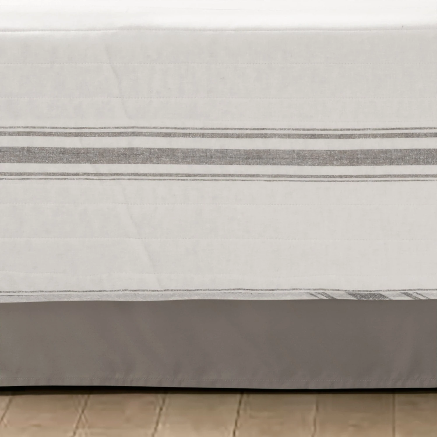 This Farmhouse Stripe Cotton Daybed Cover 6 Piece Set 1 daybed cover, 2 shams, 2 pillowcases and 1 bed skirt. It is made of 100% cotton fabric and is very soft to the touch with a 320 thread count on the front fabric.