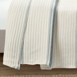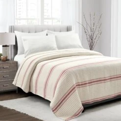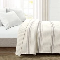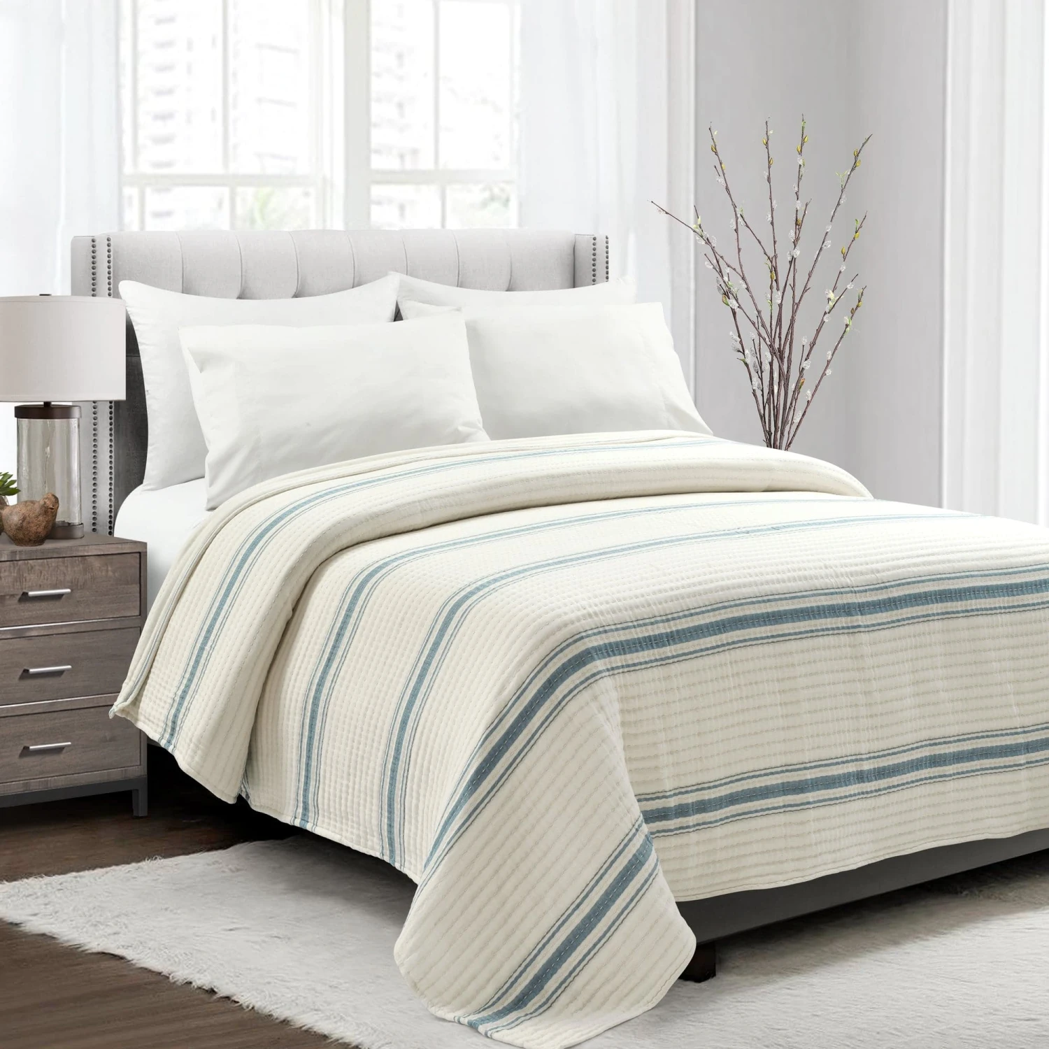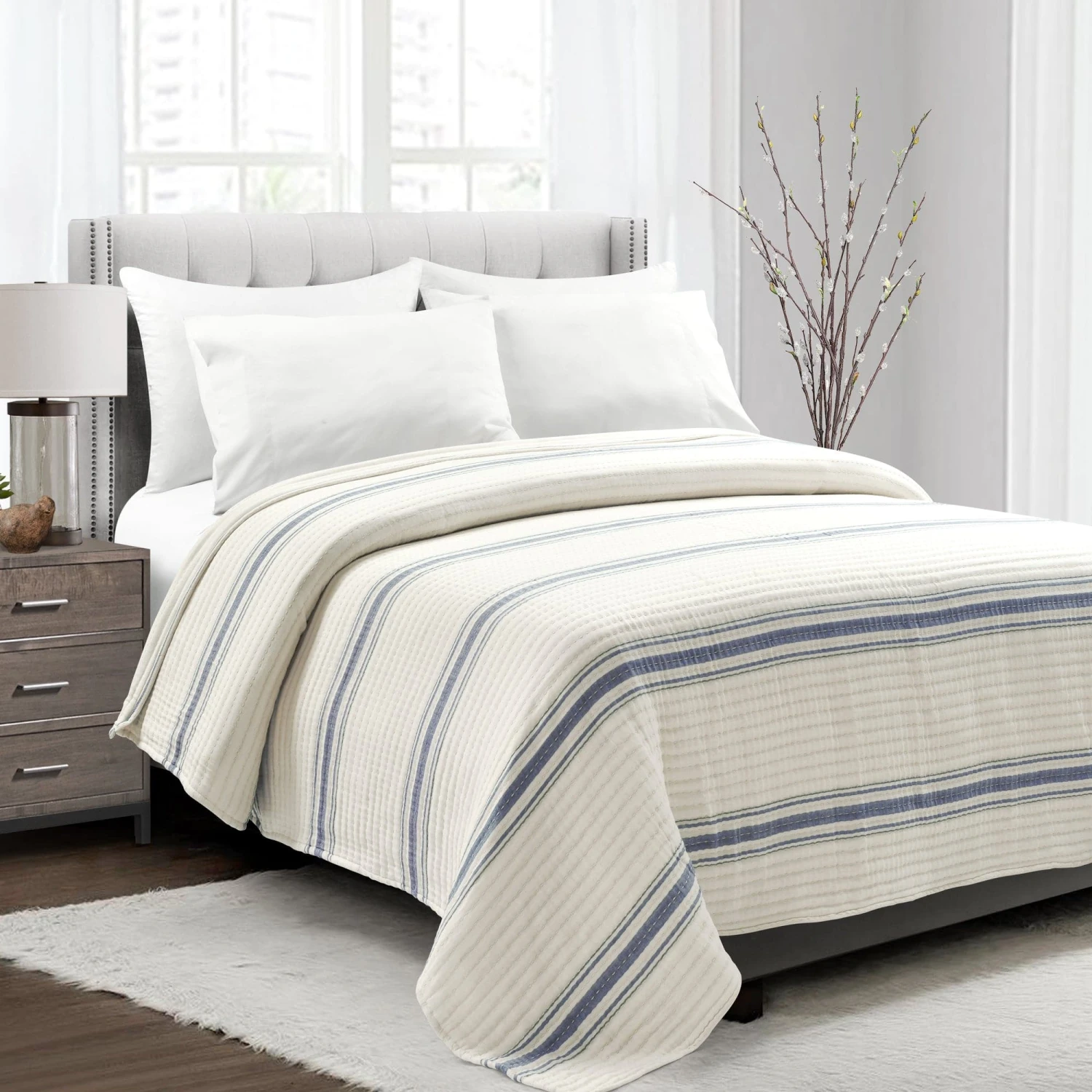 Give your bedroom a stylish upgrade with this Farmhouse Stripe Kantha Pick Stitch Yarn Dyed Cotton Woven Blanket/Quilt/Coverlet. This woven cotton bedding has pickstitch detail for a textured look. Use it as stand-alone bedding or a layering piece.