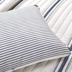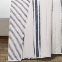 Our Farmhouse Stripe Reversible Cotton Quilt Set is reversible, giving you two stylish looks in one great set! The back of both the quilt and the shams features a pinstripe print in the same colors.