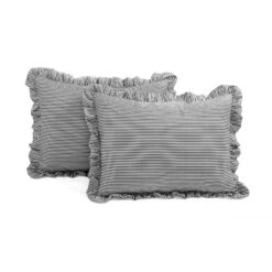 With its soft plush feel and classic stripe print and ruffle detail, this Farmhouse Stripe Reyna Ruffle Reversible Comforter 3 Piece Set is a bedding set you’ll want to stay cuddled up in all day. The homey look of this comforter and sham set complements a farmhouse or cottage style perfectly.