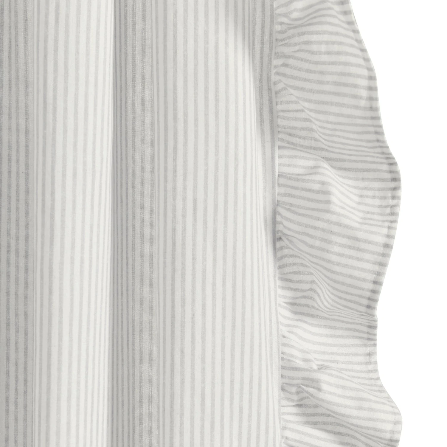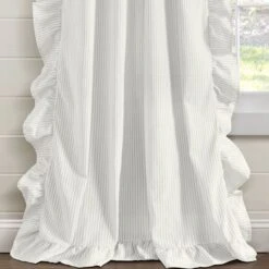 The homey feeling you get when you look at this Farmhouse Stripe Reyna Ruffle Window Curtain Panel Set online is only enhanced when you walk into a space with them draped around your windows. The effortless cascading ruffles and vertical stripe pattern are ideal for your farmhouse or cottage home.