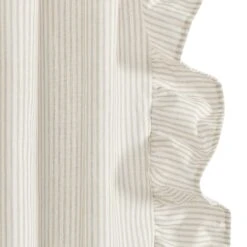 There’s just something about simple patterns and feminine ruffles that makes us feel at home. Settle into your cottage or farmhouse style with our cozy Farmhouse Stripe Reyna Ruffle Window Curtain Panel Set. A faux linen fabric with a cascading ruffle edge, these panels are perfect for anyone who wants a chic touch on a traditional look in their decor. The charming design enhances your inviting space with movement and nostalgia.