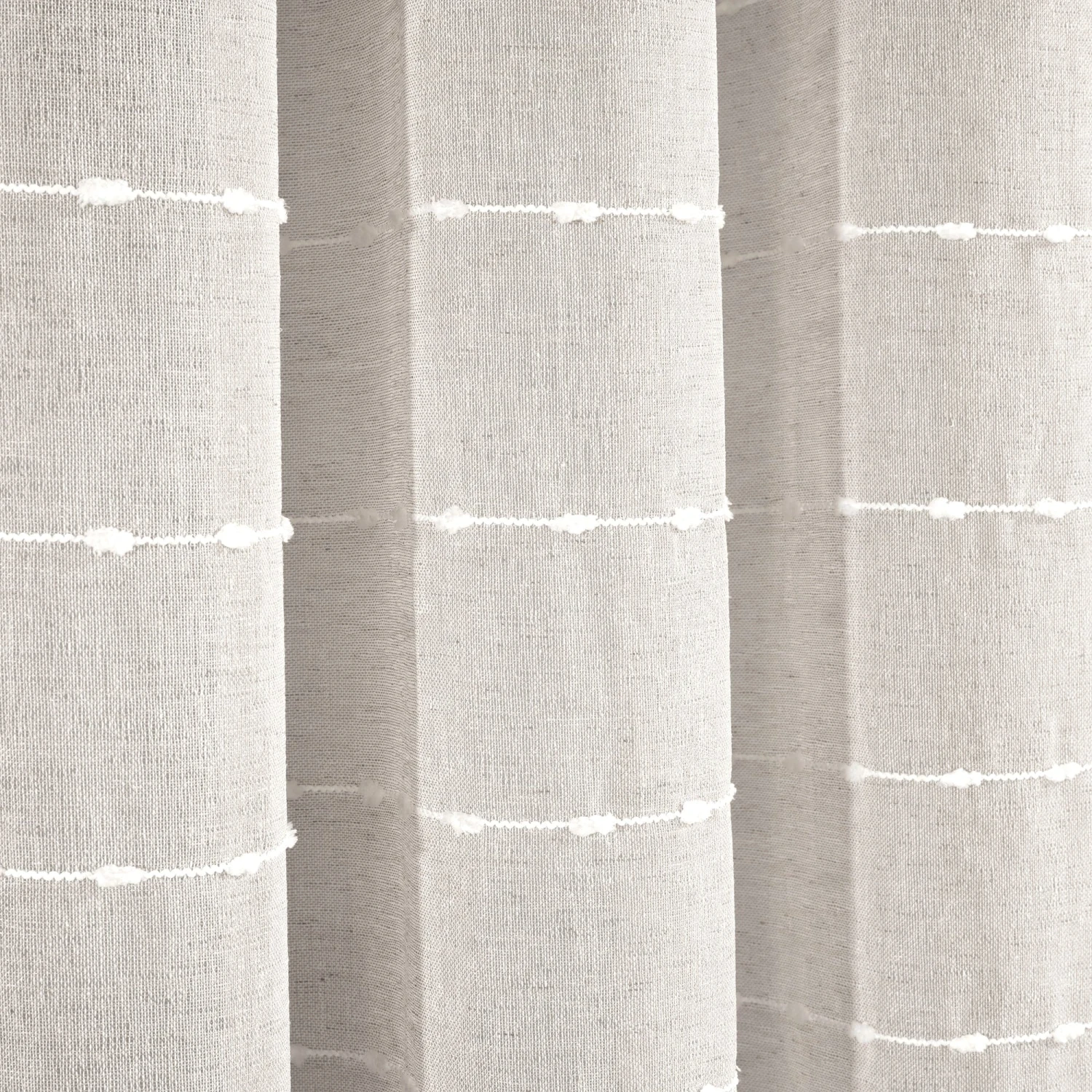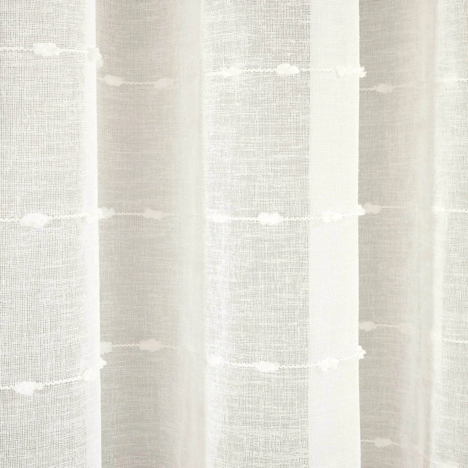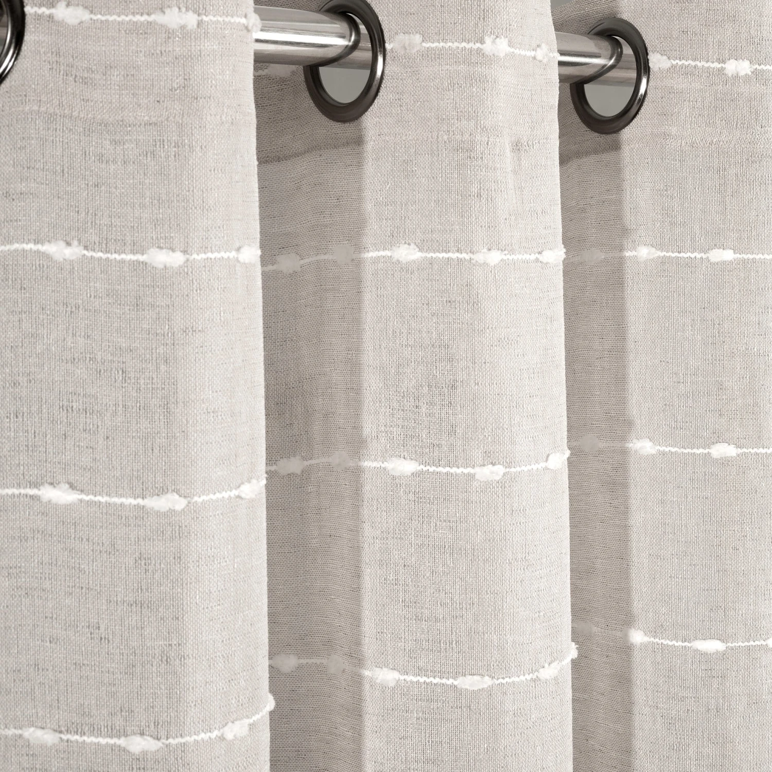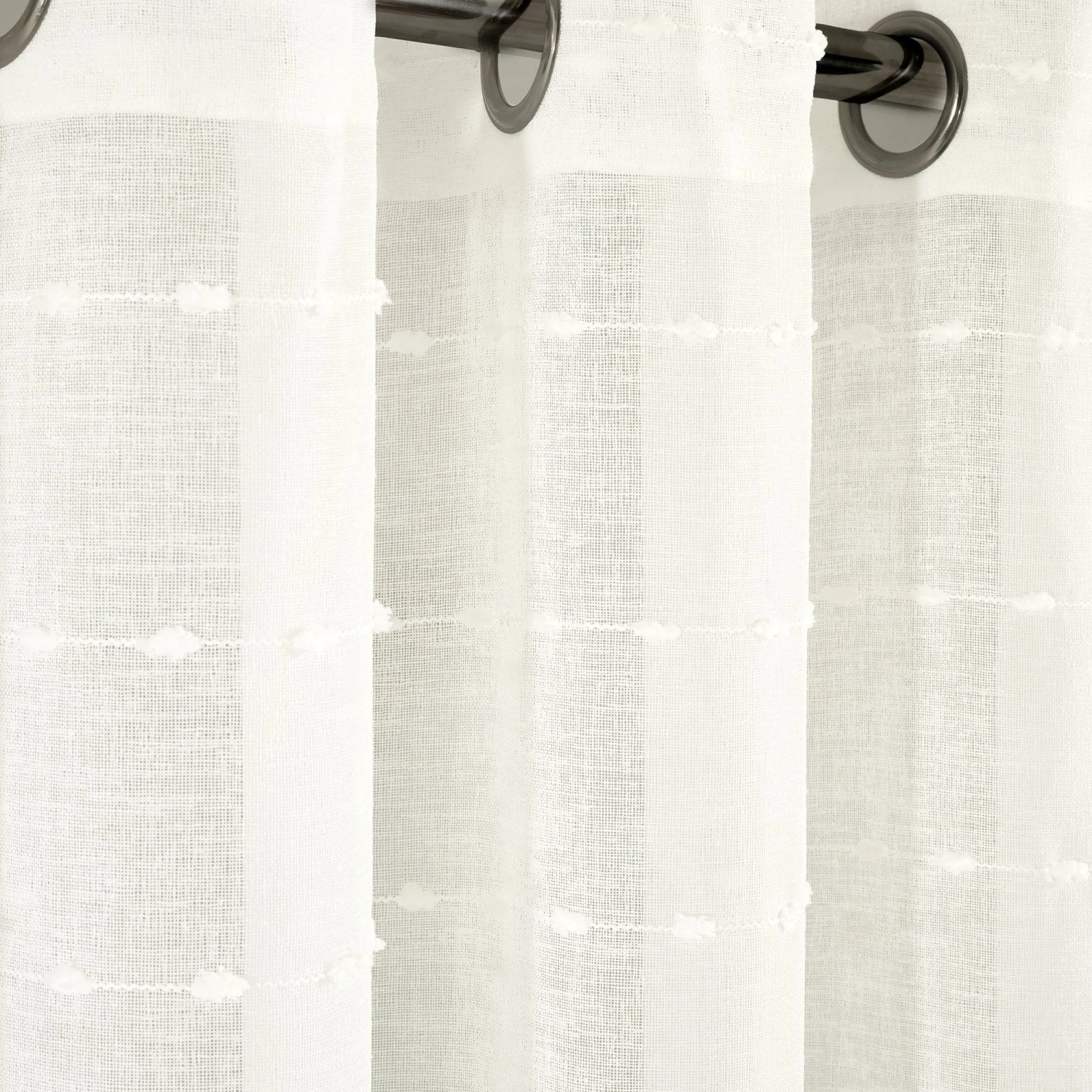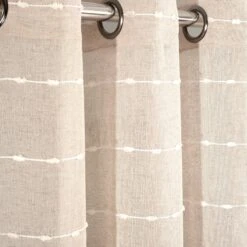 This unique Farmhouse Textured Grommet Sheer Window Curtain Panel has a subtle and beautiful texture that offers a stylish touch. The sheer attribute allows plenty of light into your home. The neutral tones of these panels fit almost any style.