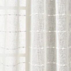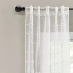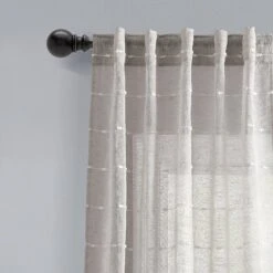 Our Farmhouse Textured Sheer Back Tab Rod Pocket Window Curtain Panel Set is available in multiple neutral color options to easily match your space. Each panel is 38 inches wide and 84 inches long. This curtain style is sold by the pair, so you will receive two panels per order. More color and size options are available in the grommet style.