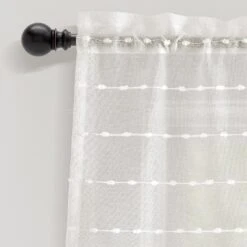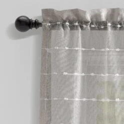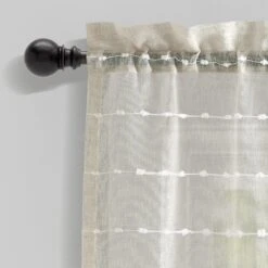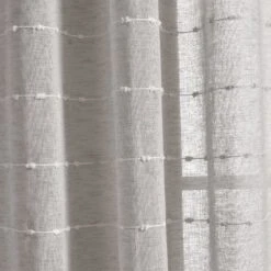 Style this Farmhouse Textured Sheer Valance in your home for a soothing farmhouse charm. The textured sheer look and neutral colors can easily be styled into any room.