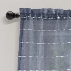 The Farmhouse Textured Sheer Valance have a 2-inch rod pocket, so they hang easily. Simply slide the curtain rod through the rod pocket or hang it from the rod with clip rings.