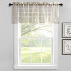 Decorate the windows of your farmhouse home with this stylish sheer valance. The simple textured pattern fits well in a kitchen, bathroom or den. Coordinate this valance with the matching tier set or full length curtains for more privacy.