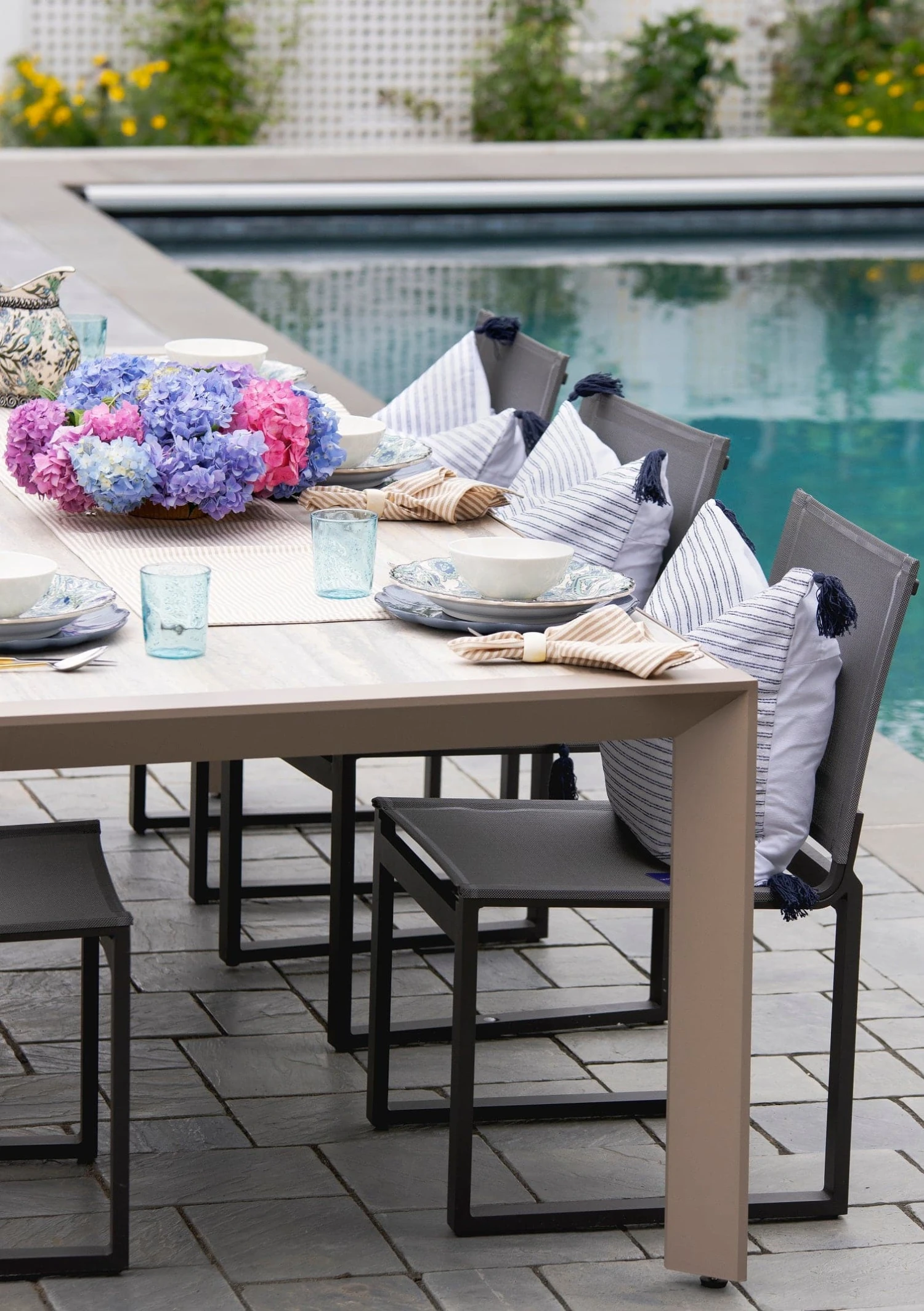 The simple ticking stripe design adds a vintage vibe that’s just right for your indoor dining gatherings. Your table set is sure to match perfectly with the neutral colors of the Farmhouse Ticking Stripe Yarn Dyed Napkin 4-Pack Set.