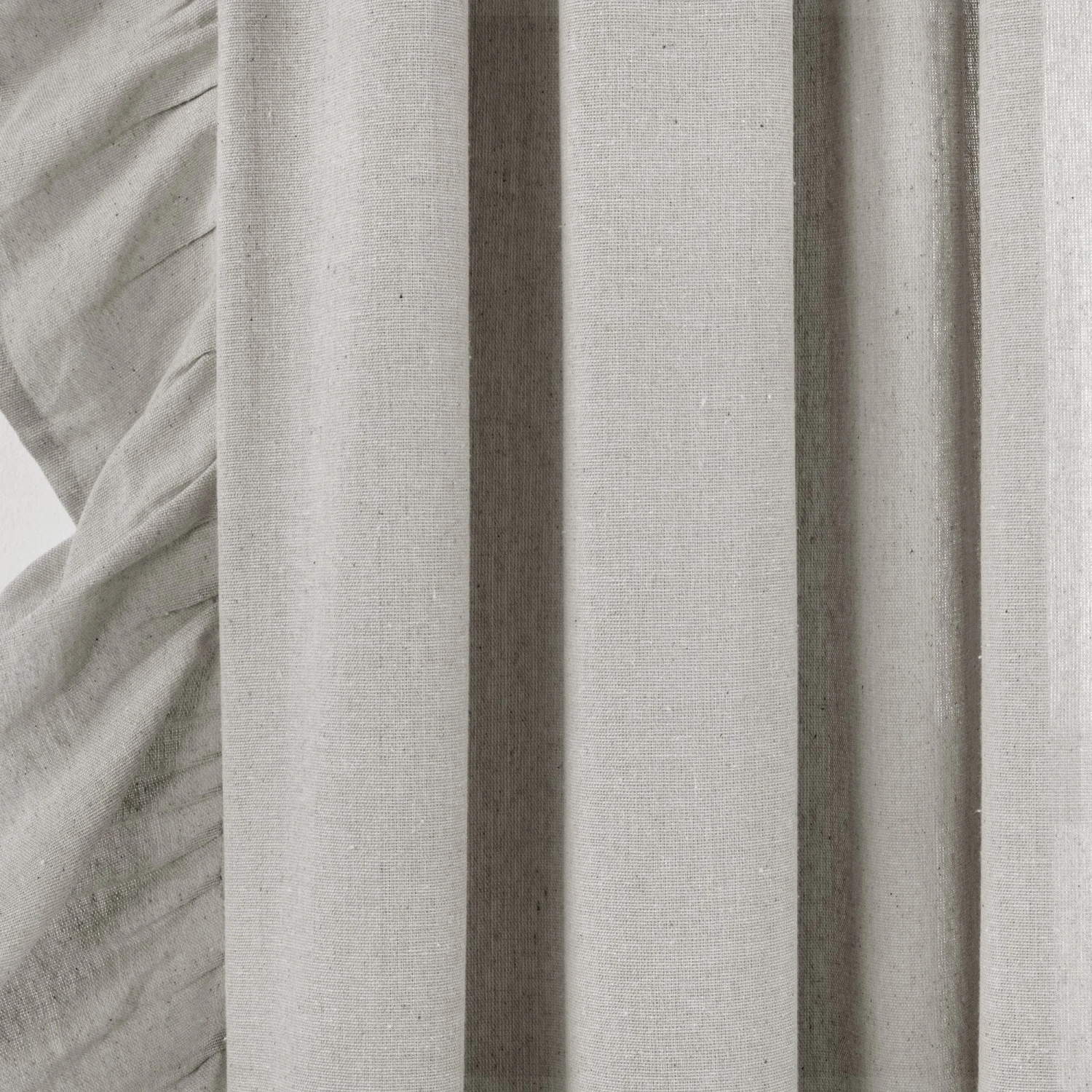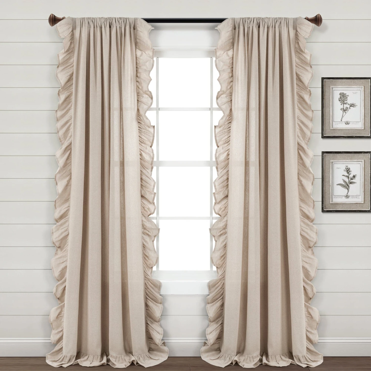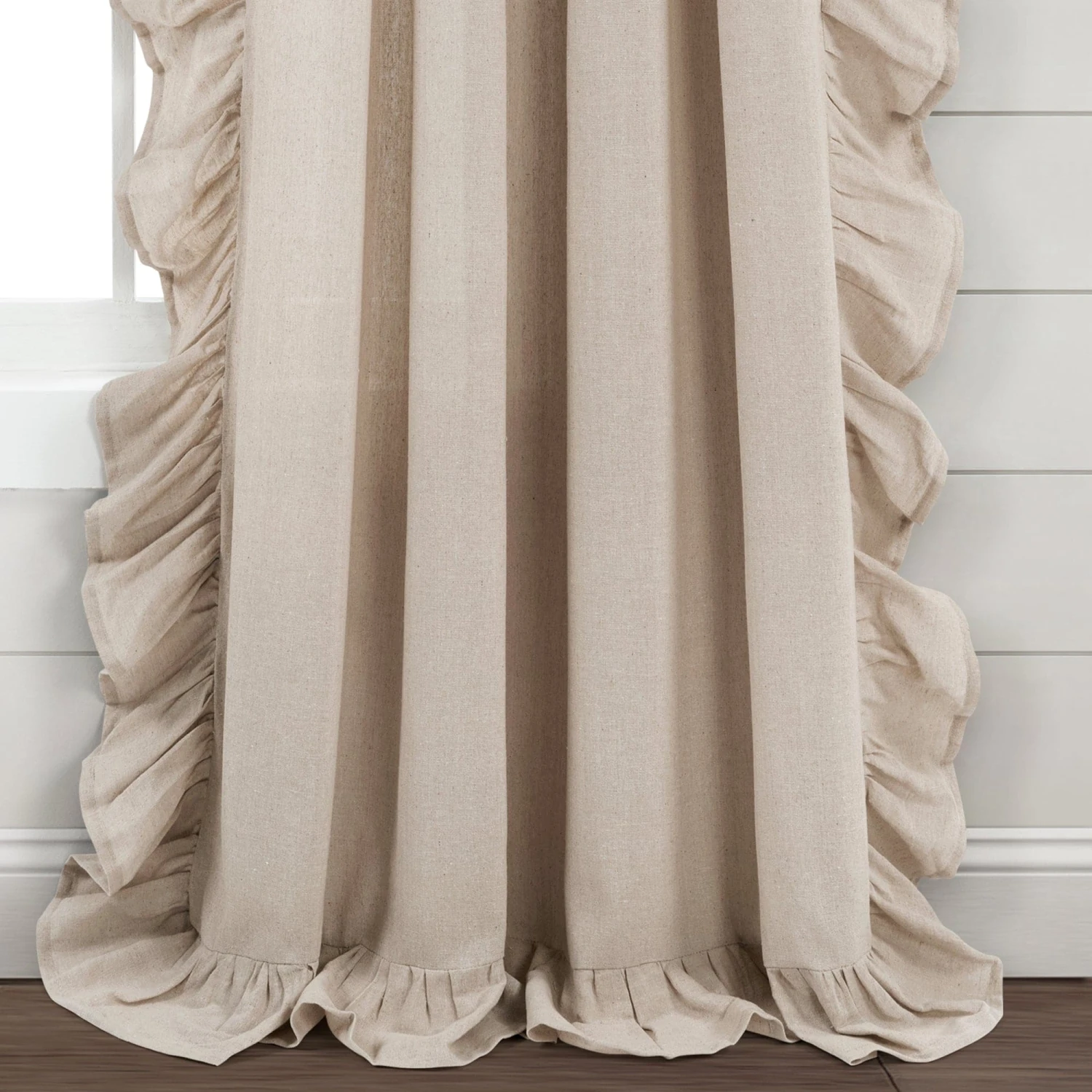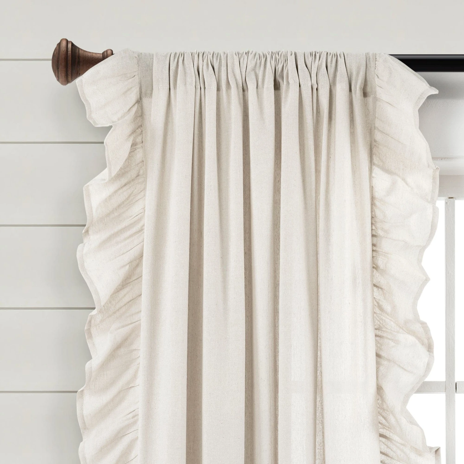 This window curtain satisfies a shabby and chic inspired style. The elegant ruffles along three edges of each Faux Linen Ruffle Window Curtain Panel offer a graceful presence into your living room, home office, nursery, or bedroom.