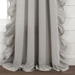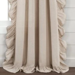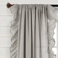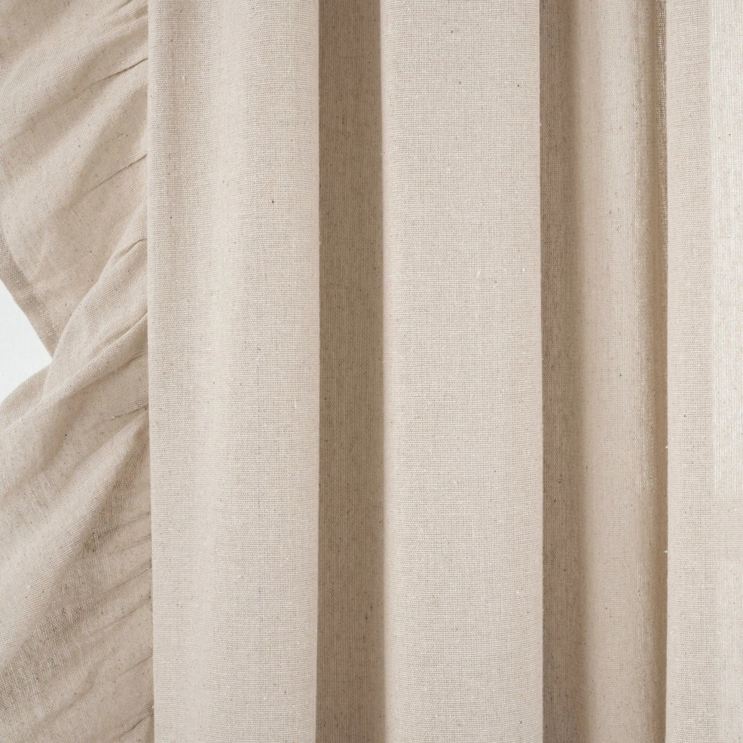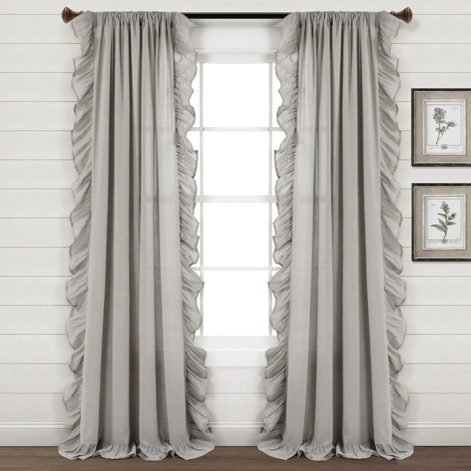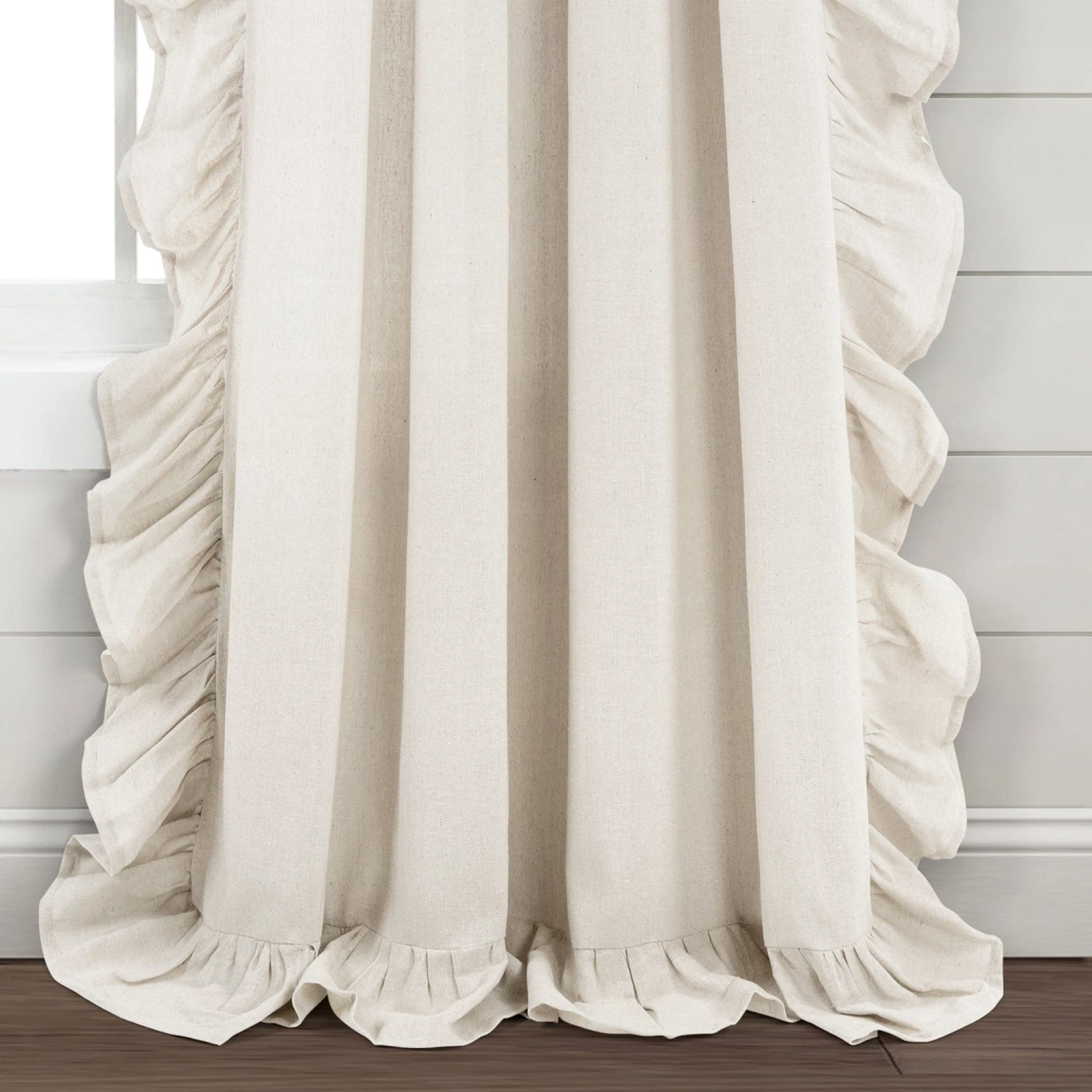 This window curtain satisfies a shabby and chic inspired style. The elegant ruffles along three edges of each Faux Linen Ruffle Window Curtain Panel offer a graceful presence into your living room, home office, nursery, or bedroom.