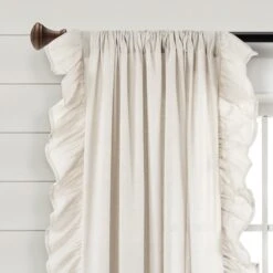 Elevate your home design with the cascading ruffles adorning this Faux Linen Ruffle Window Curtain Panel. The versatile style fits easily into many different living spaces and interior design themes like cottage, farmhouse and boho.