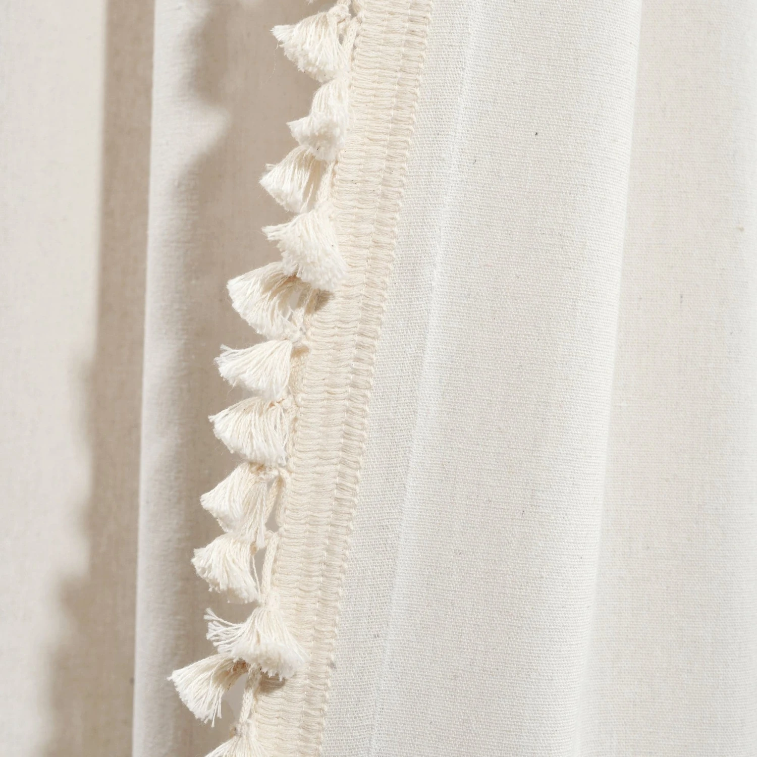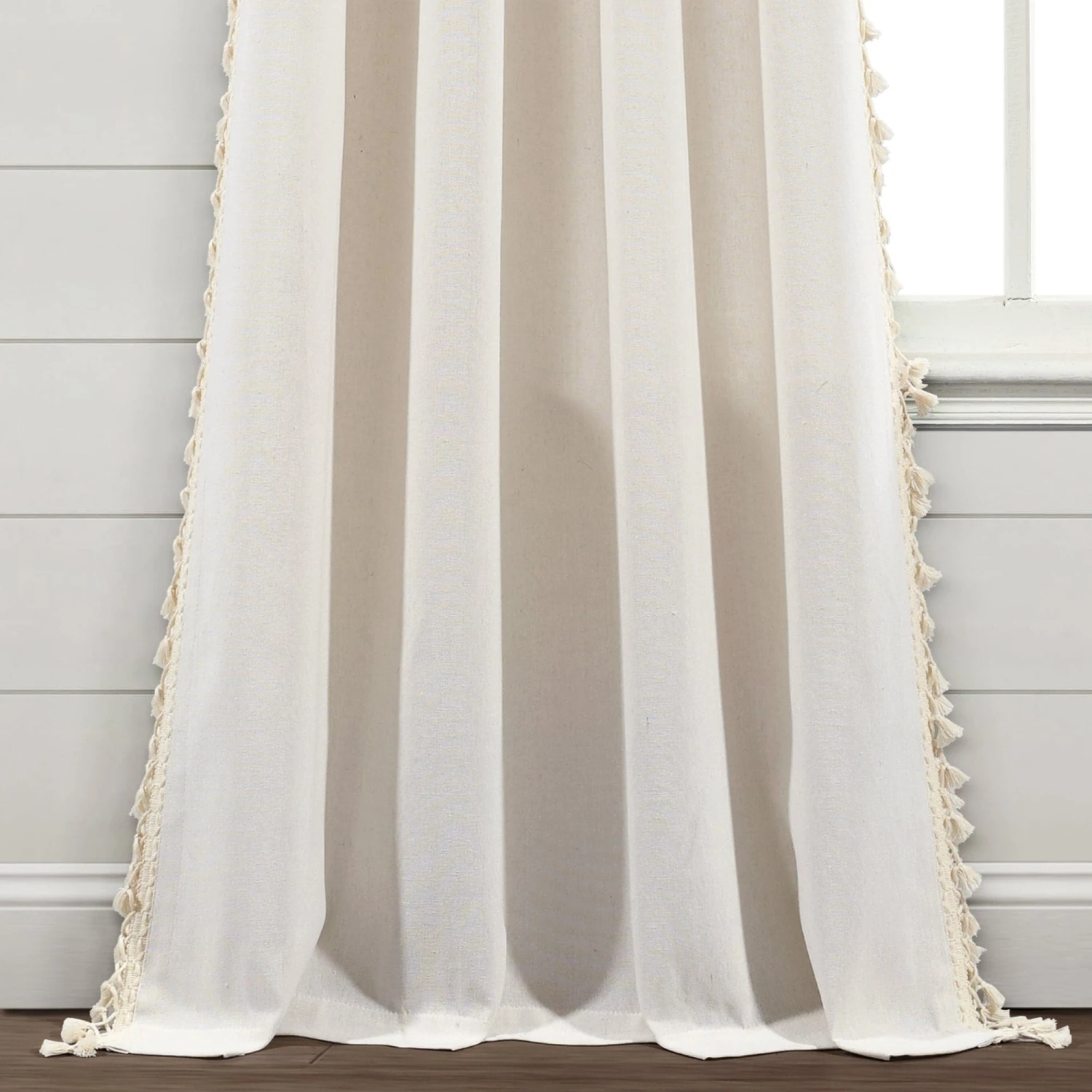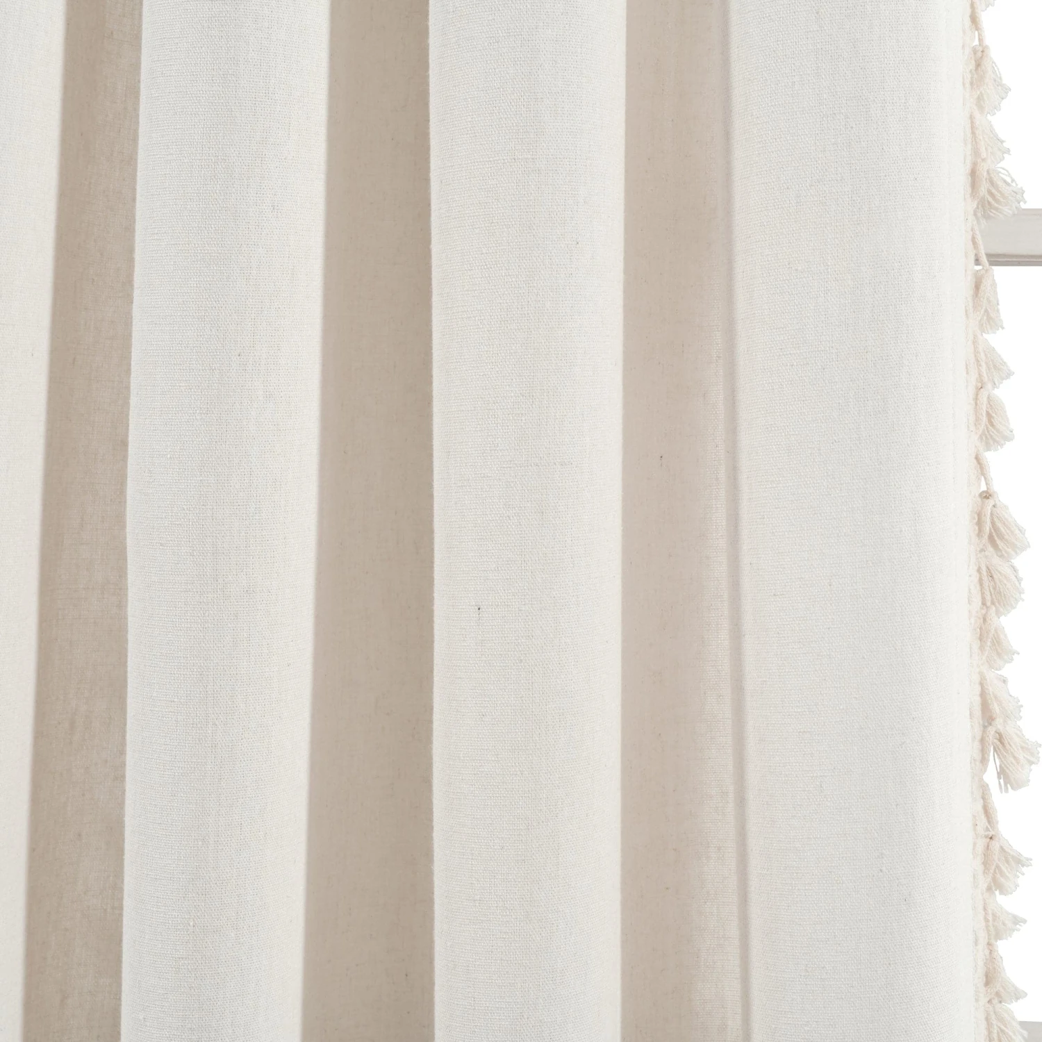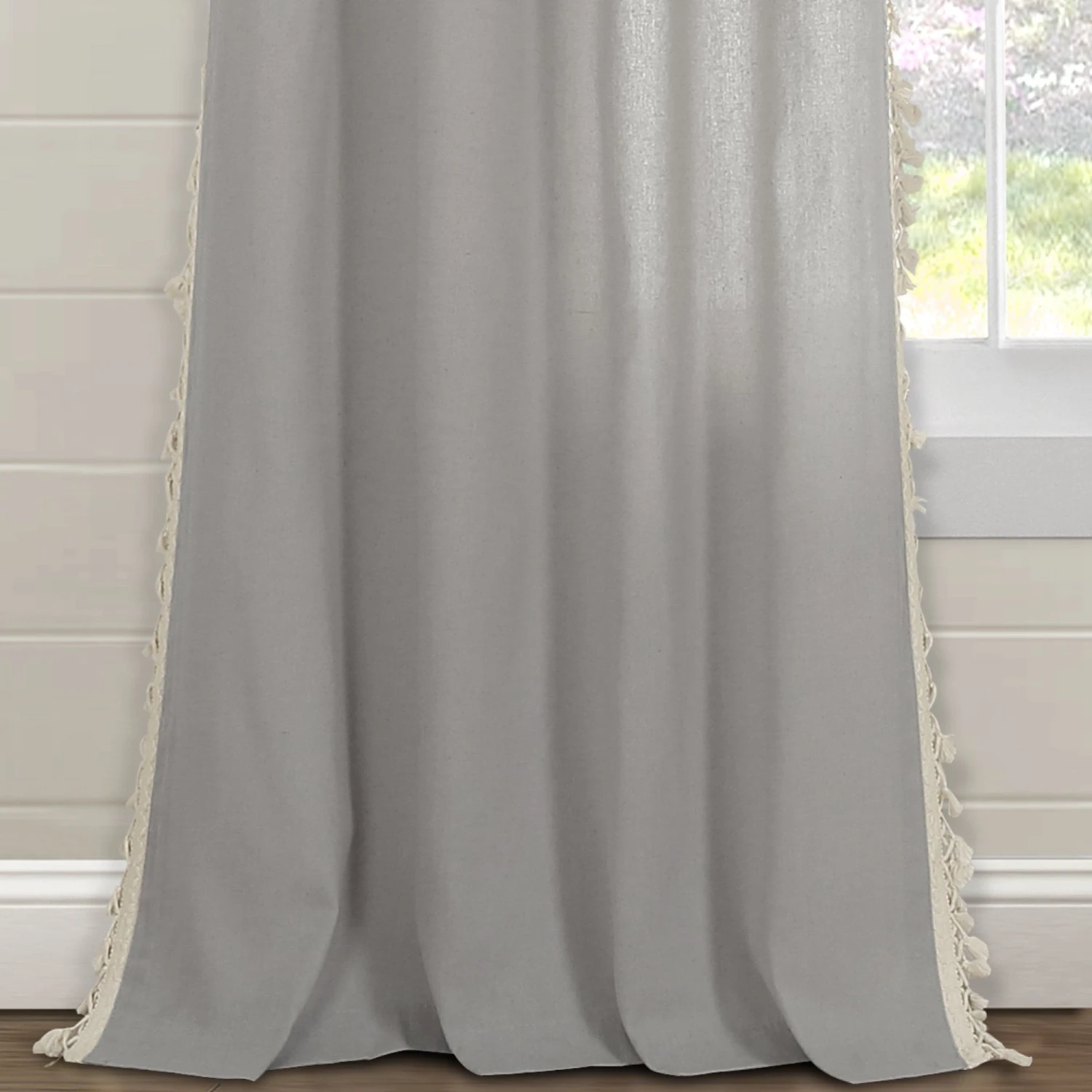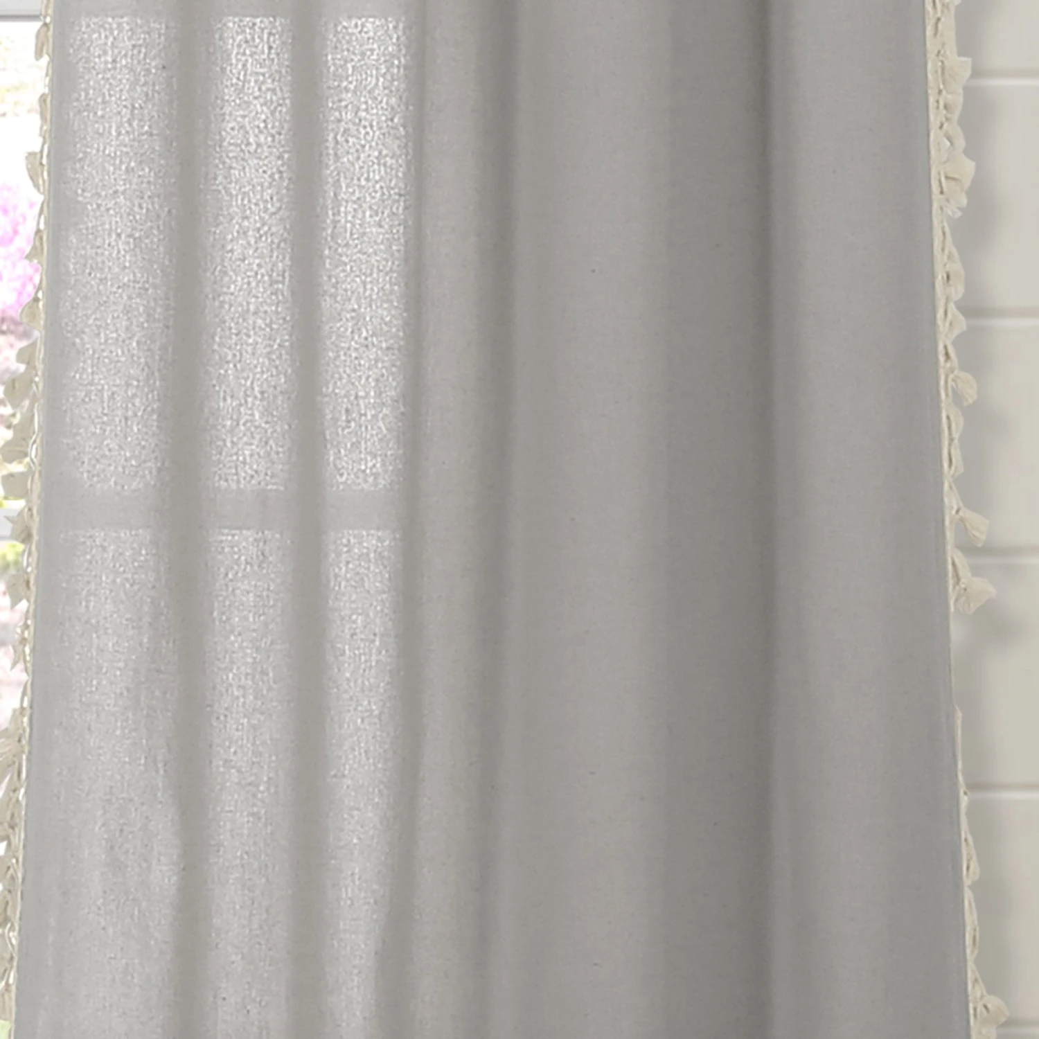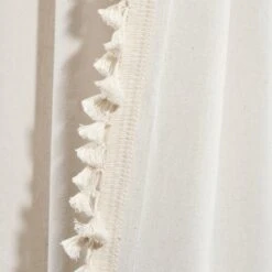 This Faux Linen Tassel Window Curtain Panel is a must have! The fun detailing along the side brings character to your home, and you’ll love the added embellishment to your decor. The length of each panel is lined with small tassels creating a look that fits many decor styles, from boho to farmhouse, cottage, traditional and more.