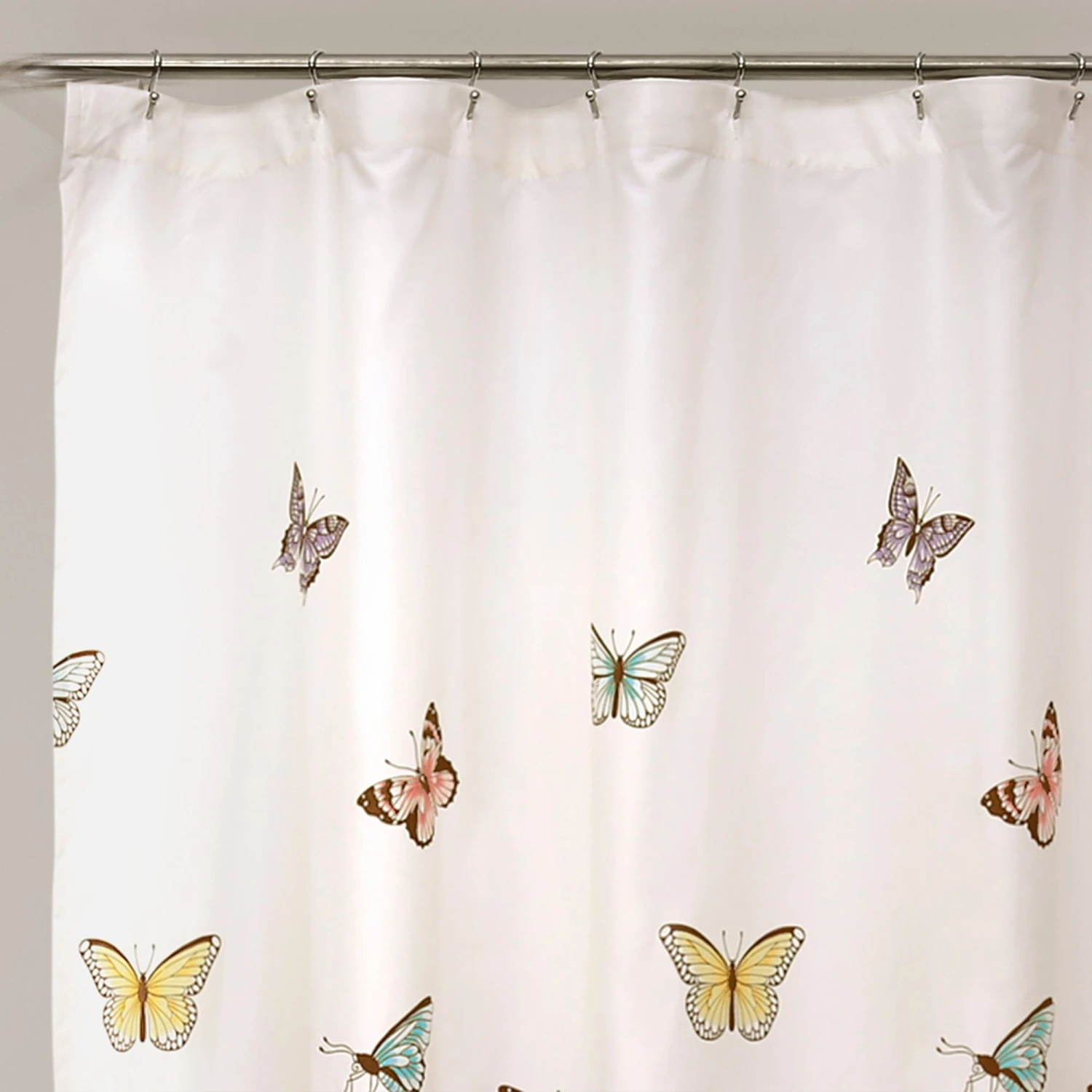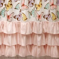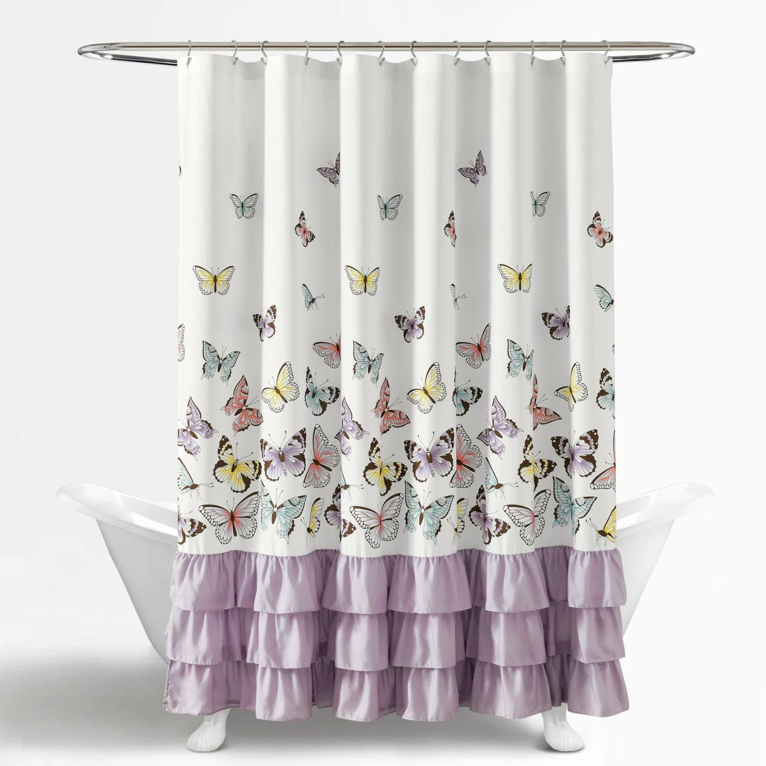 Give the little princess in your life a beautiful bathroom with this charming shower curtain featuring colorful butterflies printed on the top and fun layered ruffles that lie beautifully across the bottom. The Flutter Butterfly Shower Curtain is sure to make a statement in your home.
