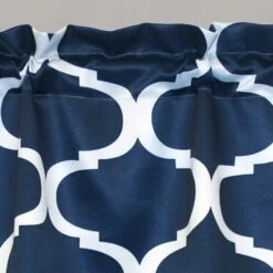 The Geo Valance is sold individually. They are available in navy only. All other colors have sold out. Each valance measures 18 inches high and 52 inches wide with a two-inch header.