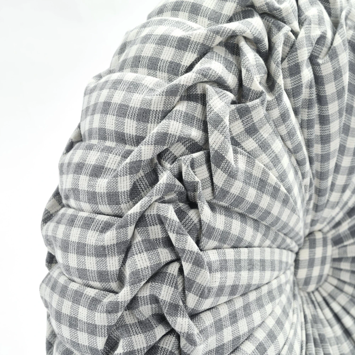 The detail in the pleats and gingham check pattern in this Gingham Check Yarn Dyed Pleated Decorative Pillow add a charming twist to these classic round pillows. This design is perfect to amp up your home decor in a very unique way.