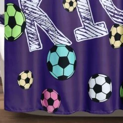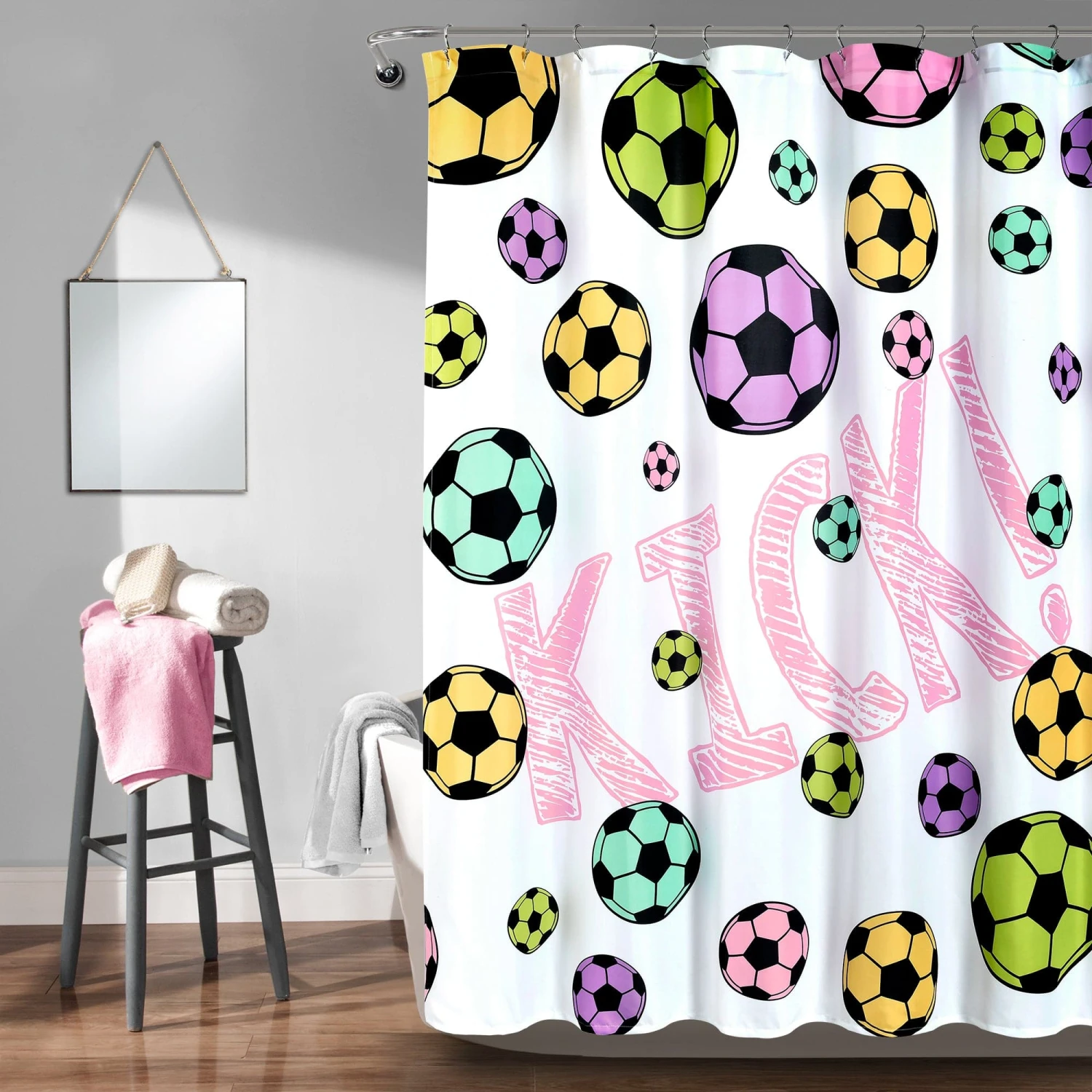 Decorate your little soccer star’s bathroom the only way you can – with an exciting pop of color and fun! This Girls Soccer Kick Shower Curtain sets the foundation for a bright and cheery child’s bathroom design.