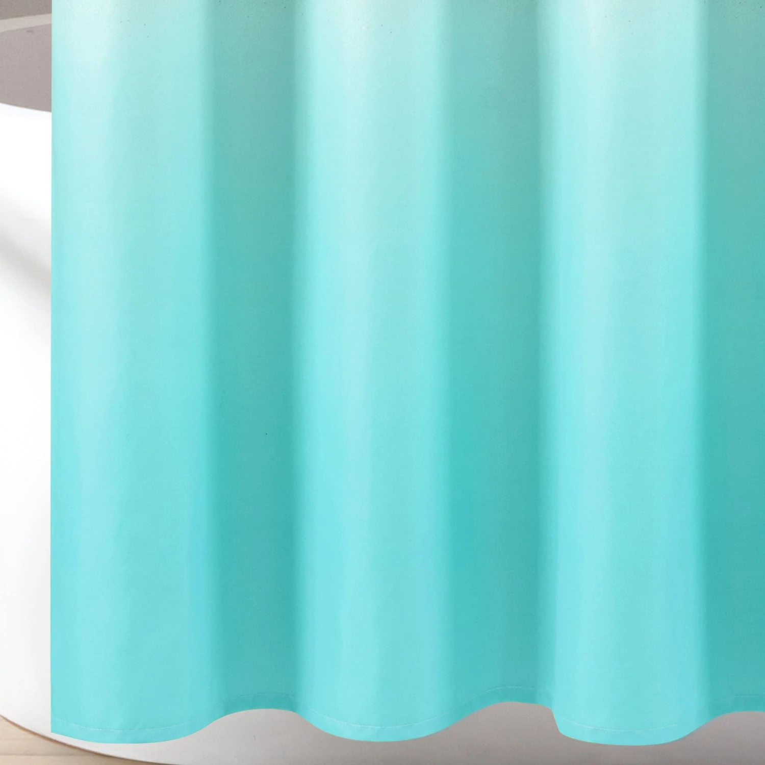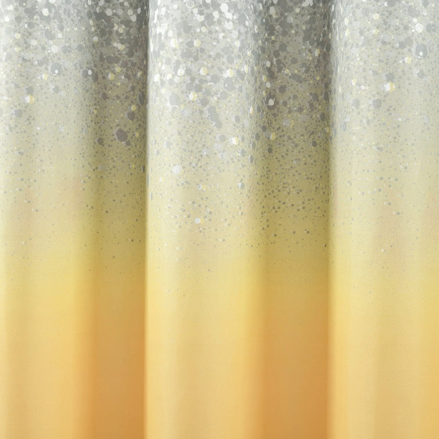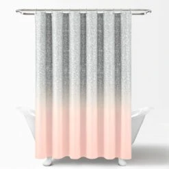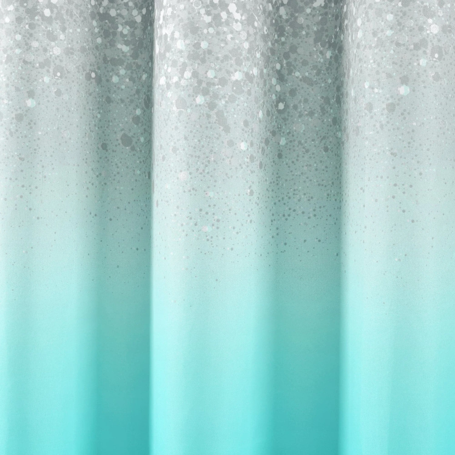 Amp up your bathroom style with this Glitter Ombre Metallic Print Shower Curtain. The top of the curtain features a beautiful printed sparkly design that fades down into a fun and bright decorative color. Hang this in your child’s bathroom or your guest bathroom.