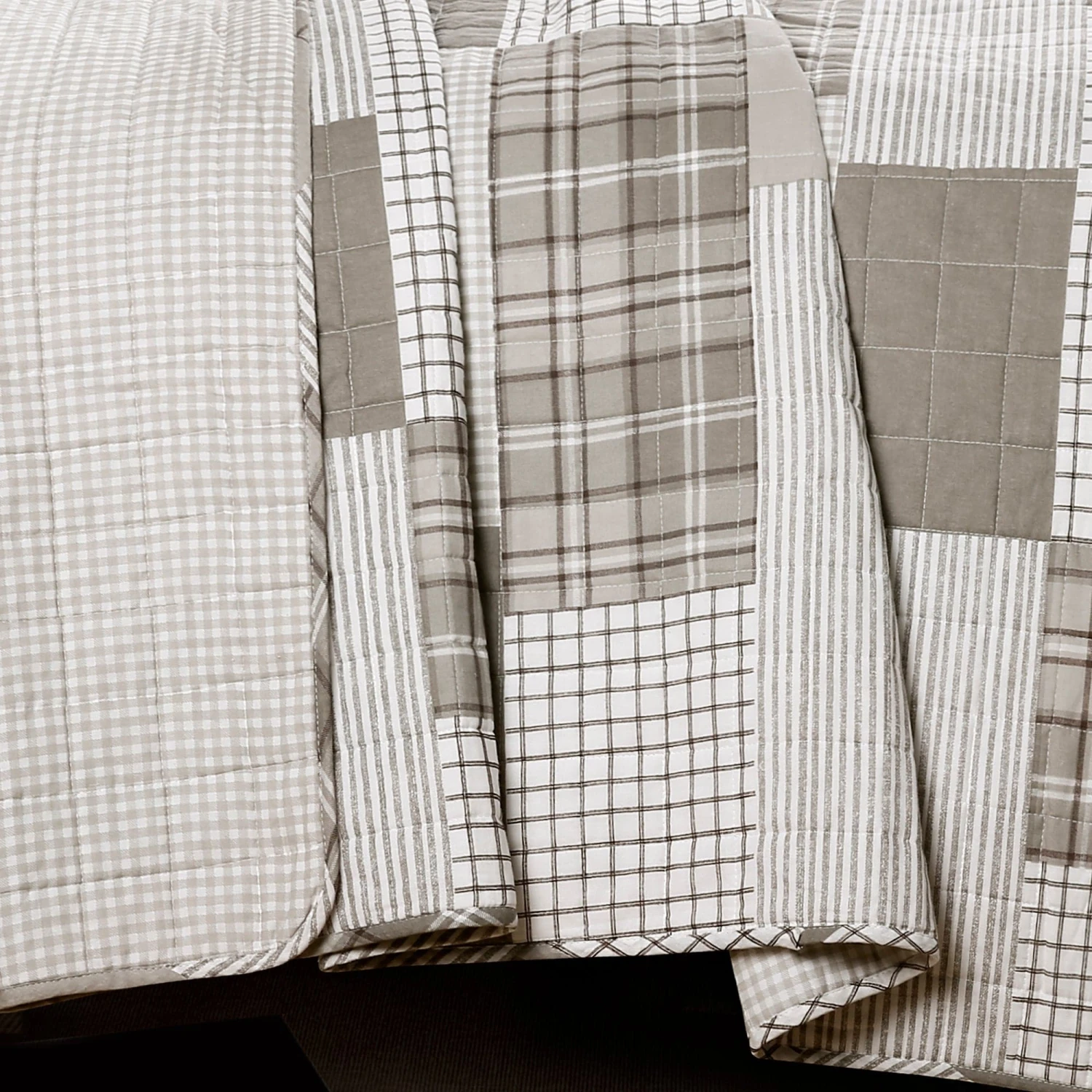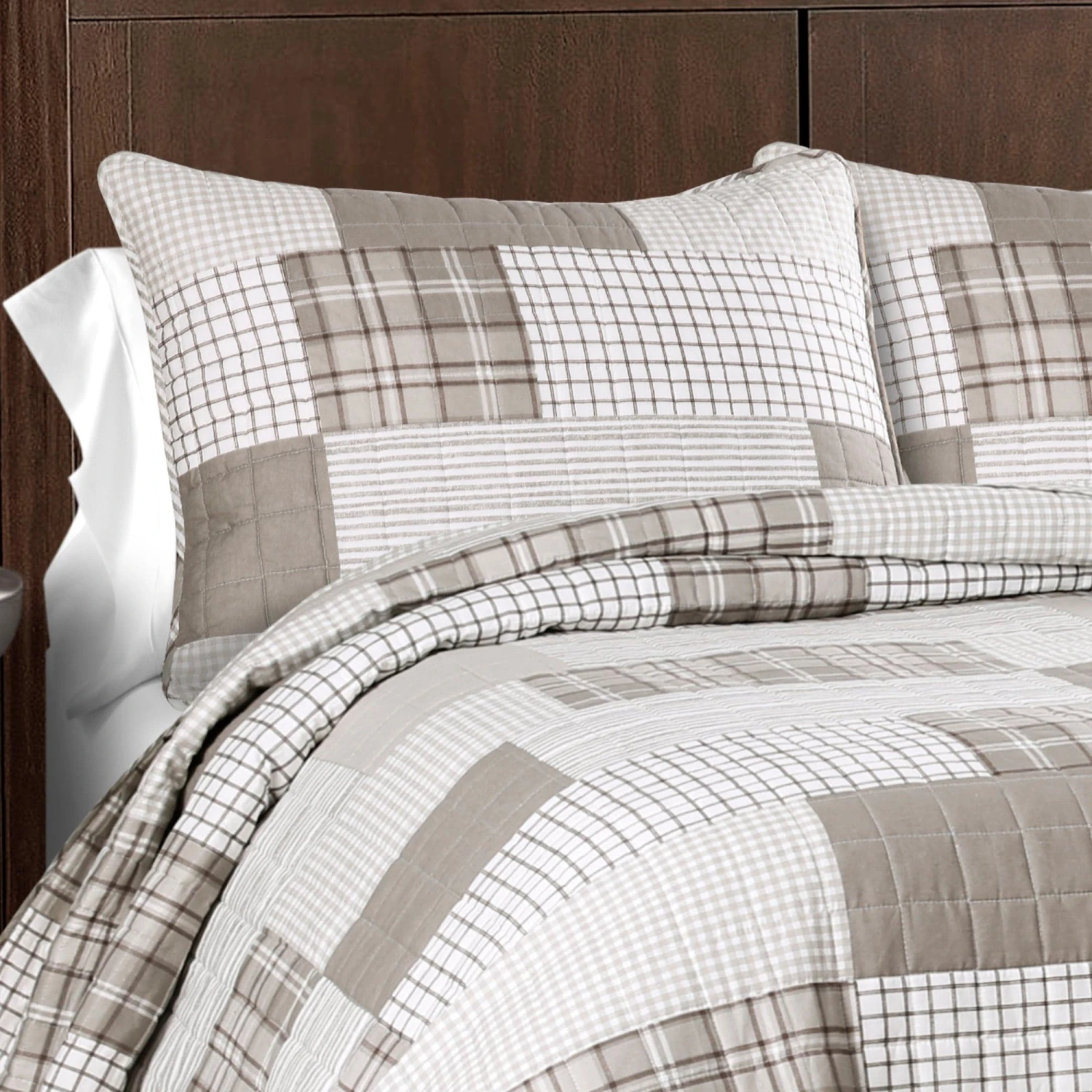 This Greenville 3 Piece Quilt Set is like having two quilts in one. One side of the quilt and each sham has a bold plaid pattern, while the reverse has a softer, more subdued checker pattern in the same color scheme.