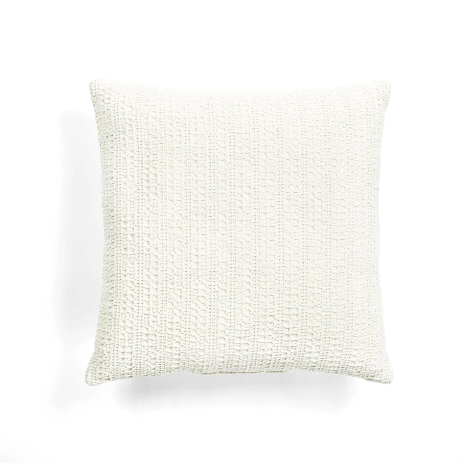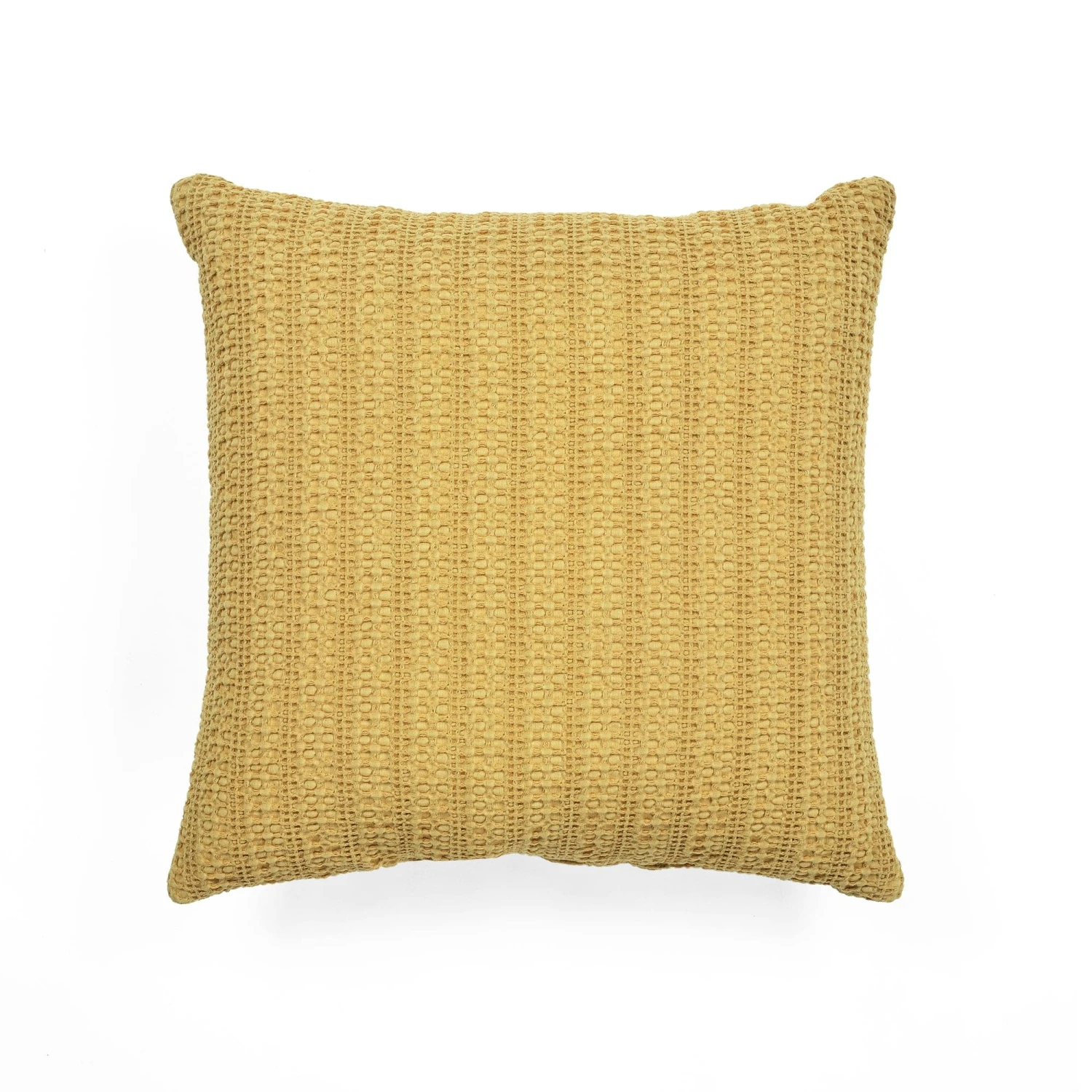 This square accent pillow with poly fill measures 20 inches on each side with lovely textured waffle knit design on the front. Our Haniya Geo Decorative Pillow is a standard size that is large enough to make an impact on your design but not so big that it will take over the look of the room.