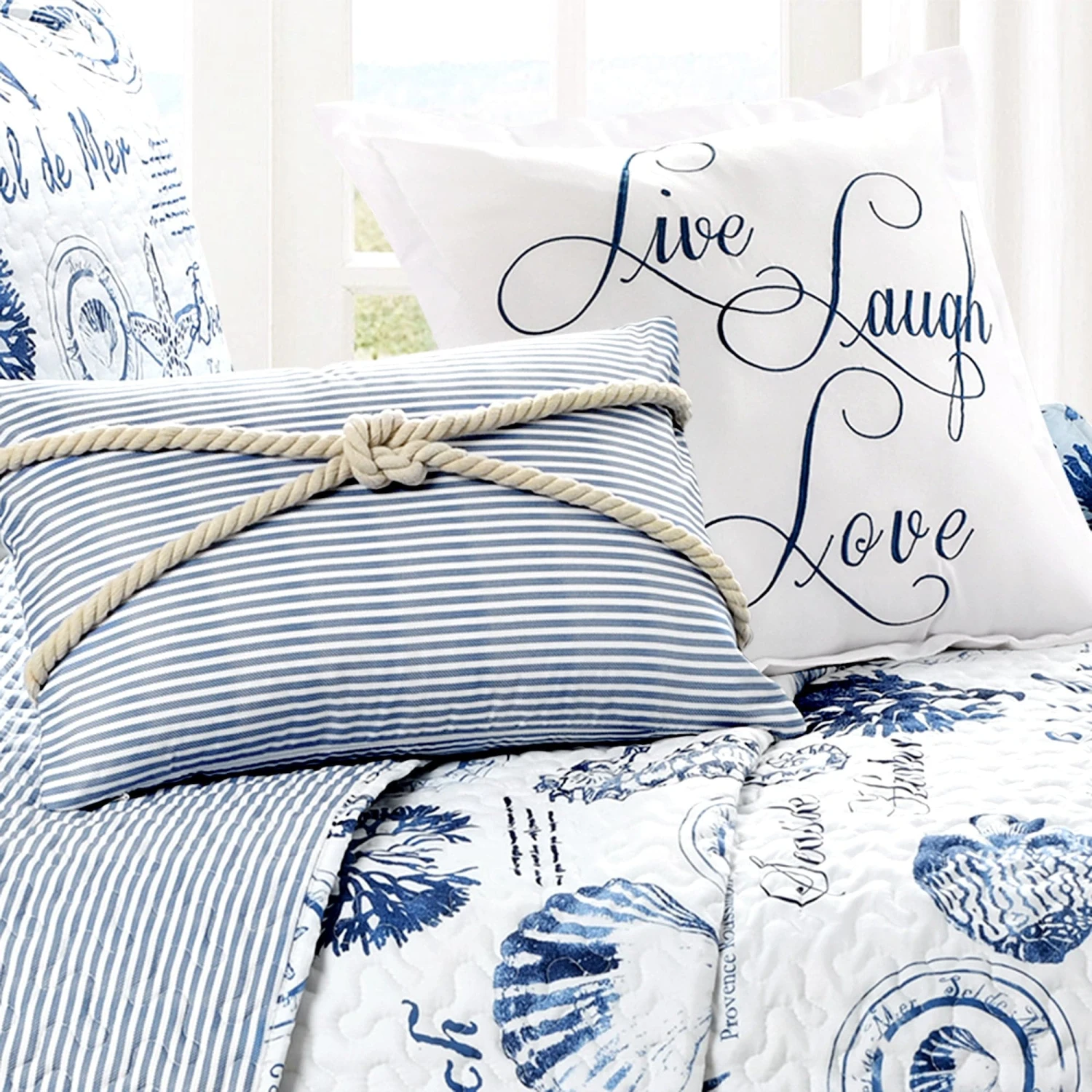 The iconic coastal look of the quilt pattern is a beautiful option for your beach inspired design themes.