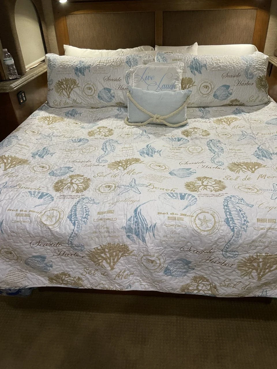 This Harbor Life Reversible Quilt Set includes a soft reversible quilt, matching pillow shams, matching pillow cases and two unique decorative throw pillows to give it a complete look. It’s basically a full bed in a bag. This set is available in your choice of Twin XL, Full/Queen and King sizes.
