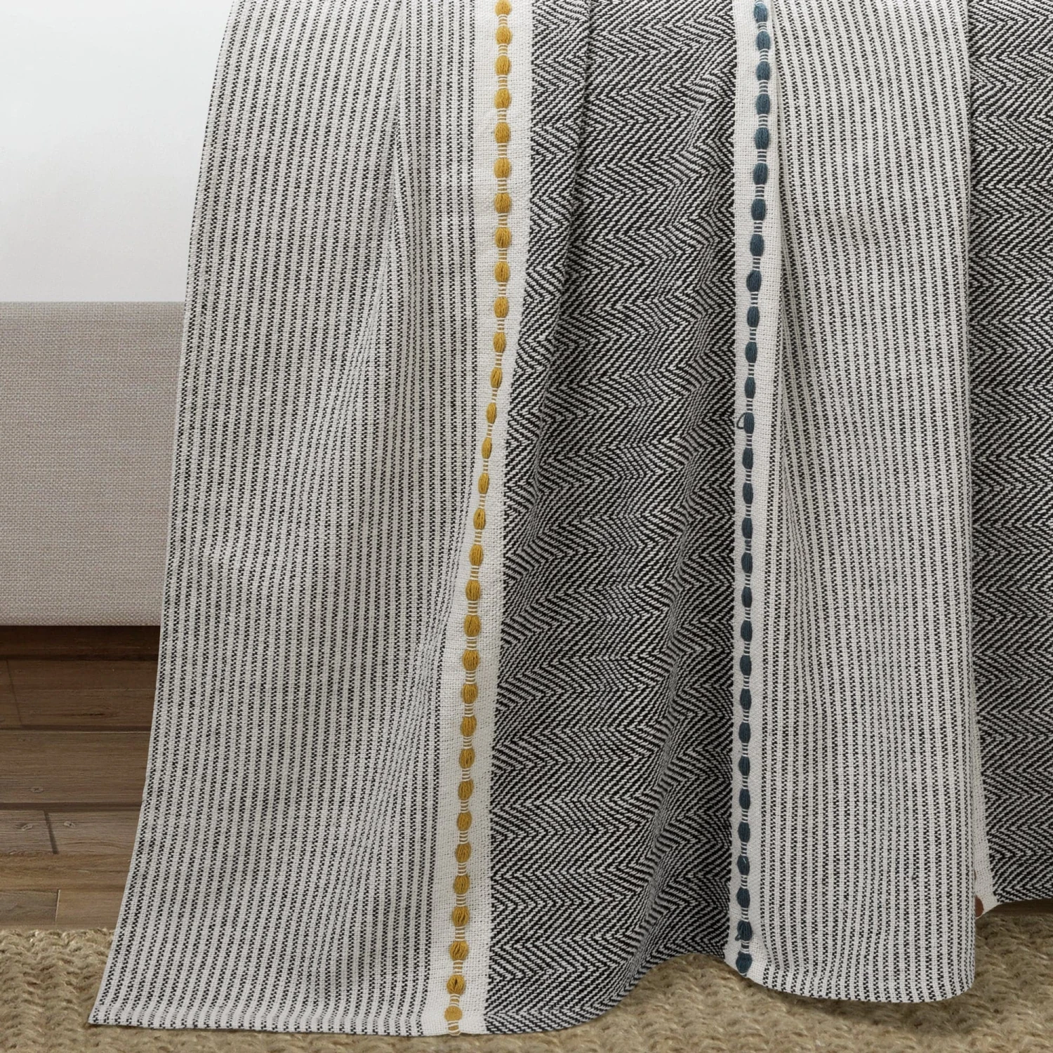 We are sure the Herringbone Stripe Yarn Dyed Cotton Blanket/Coverlet will impress you, your family members and guests with the special details that are incorporated in the design. The natural texture of the fibers is enhanced with the woven and tufted detailing.