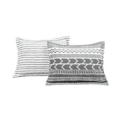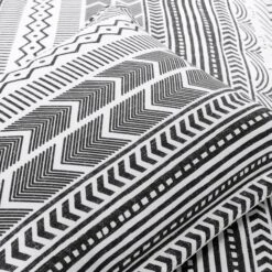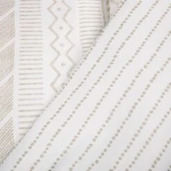 The reverse side of the comforter features a print of dotted stripes against a white background. This gives you the option to change the look of the room in an instant, simply by flipping the comforter over. The two sides of the Hygge Geo Comforter 5 Piece Set are also great for layering with other quilts or throws.