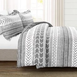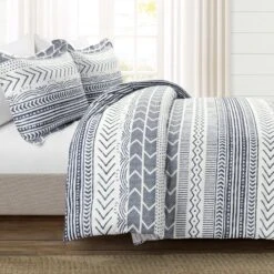 The term hygge is meant to represent everyday little joys and the celebration of family and warmth. This Hygge Geo Reversible Cotton Duvet Cover 3 Piece Set embraces the cozy connections we create with rows of familiar geometric patterns on the front and a reverse with a simple dotted design.