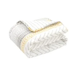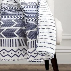 This reversible throw blanket is lightweight and is perfect for those who love Scandinavian style and design. The front of the Hygge Geo Throw features stripes of various geometric patterns printed on 100% cotton.