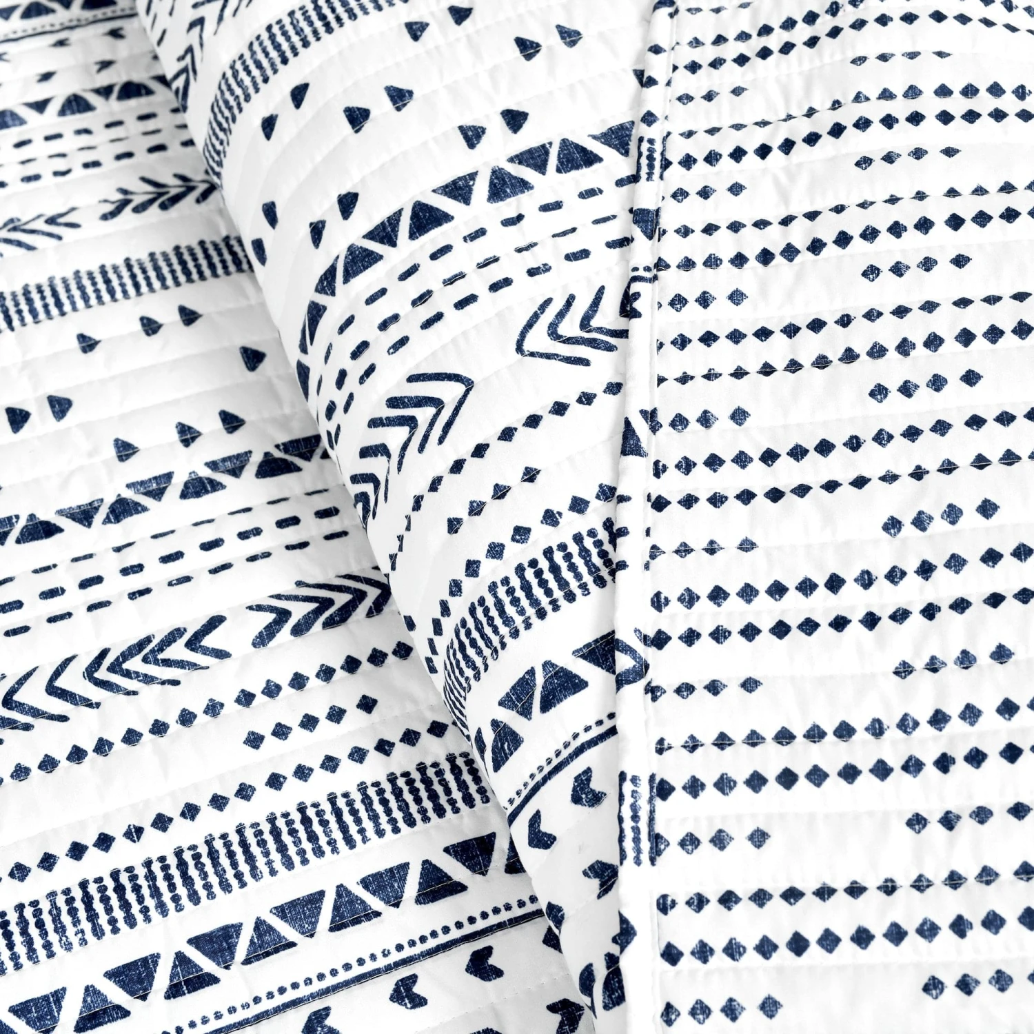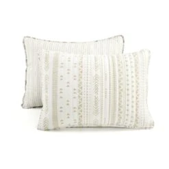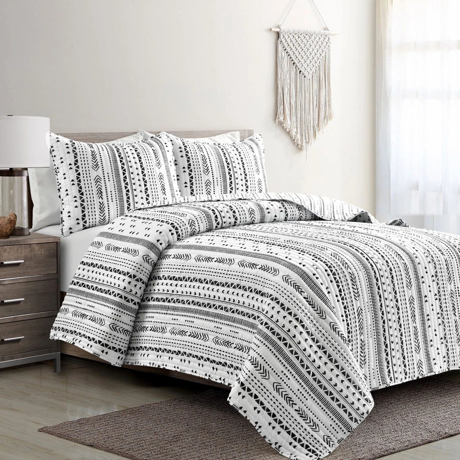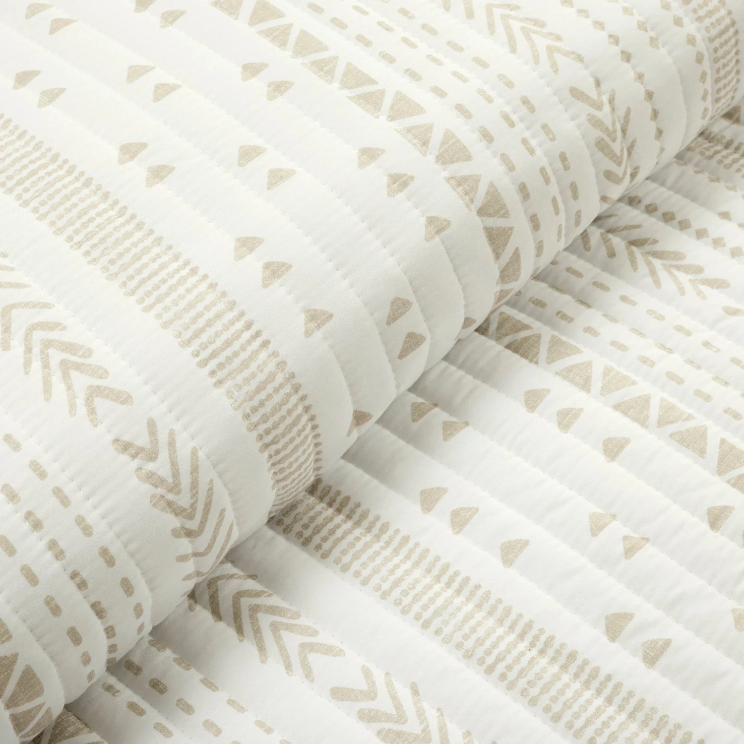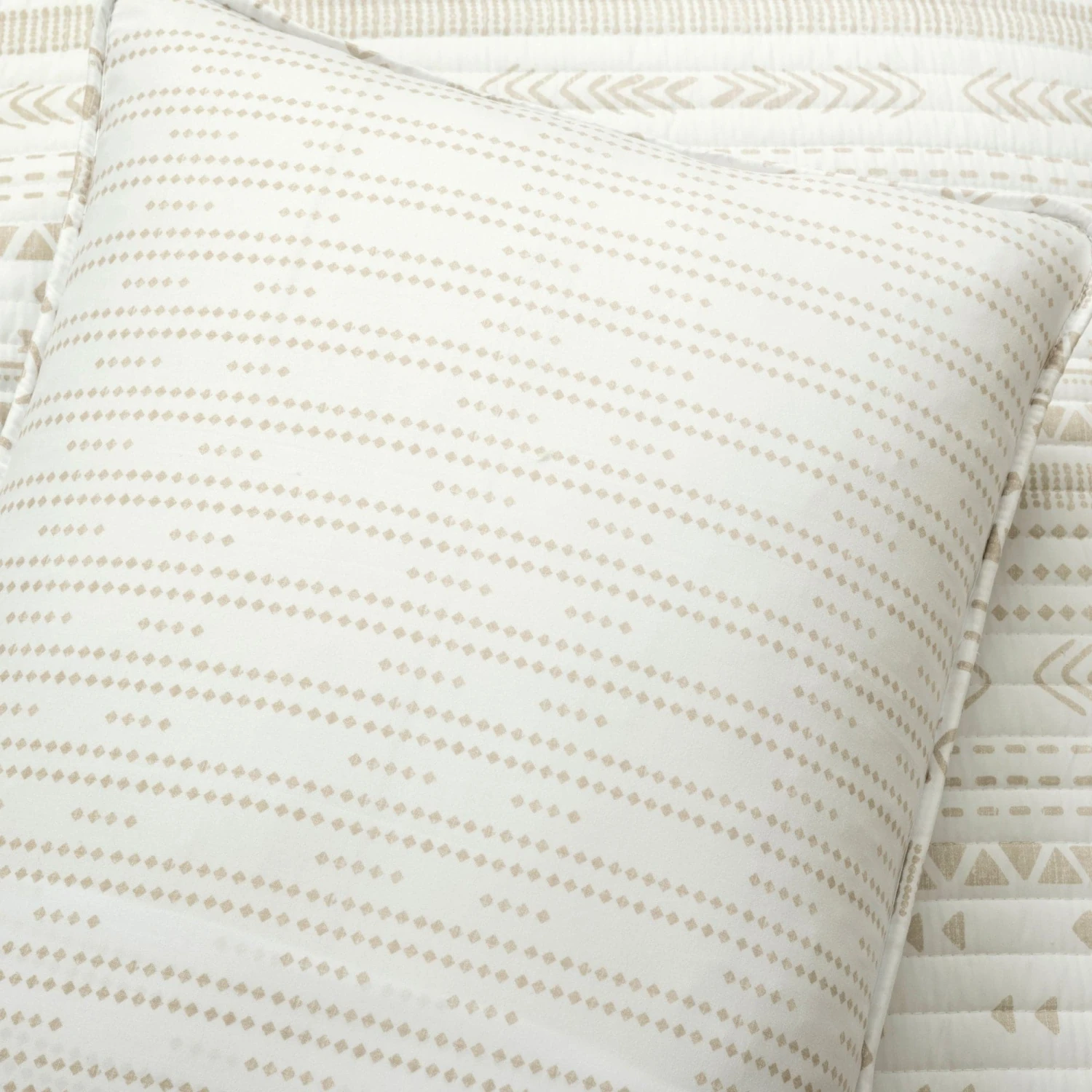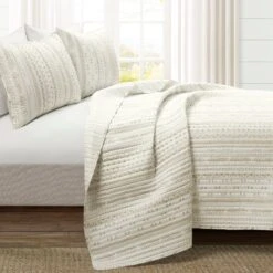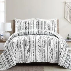 Add Scandinavian style to your home with this reversible Hygge Stripe 3 Piece Quilt Set featuring vertical stripes of various geometric patterns. This three-piece quilt set provides the perfect neutral look to create a cozy feeling in your master bedroom or guest bedroom.