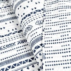 The reverse side of the Hygge Stripe 3 Piece Quilt Set features a print of diamonds in a striped pattern against a white background. This gives you the option to change the look of the room in an instant, simply by flipping the cover over. Both sides of this set are also great for layering with other quilts or comforters.