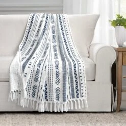 This throw is the perfect size for a single adult to use as a blanket or for two adults to snuggle in together on the couch. The Hygge Stripe Cotton Slub Tassel Fringe Throw measures 60 inches long and 50 inches wide, plus it has a three-inch tassel fringe.