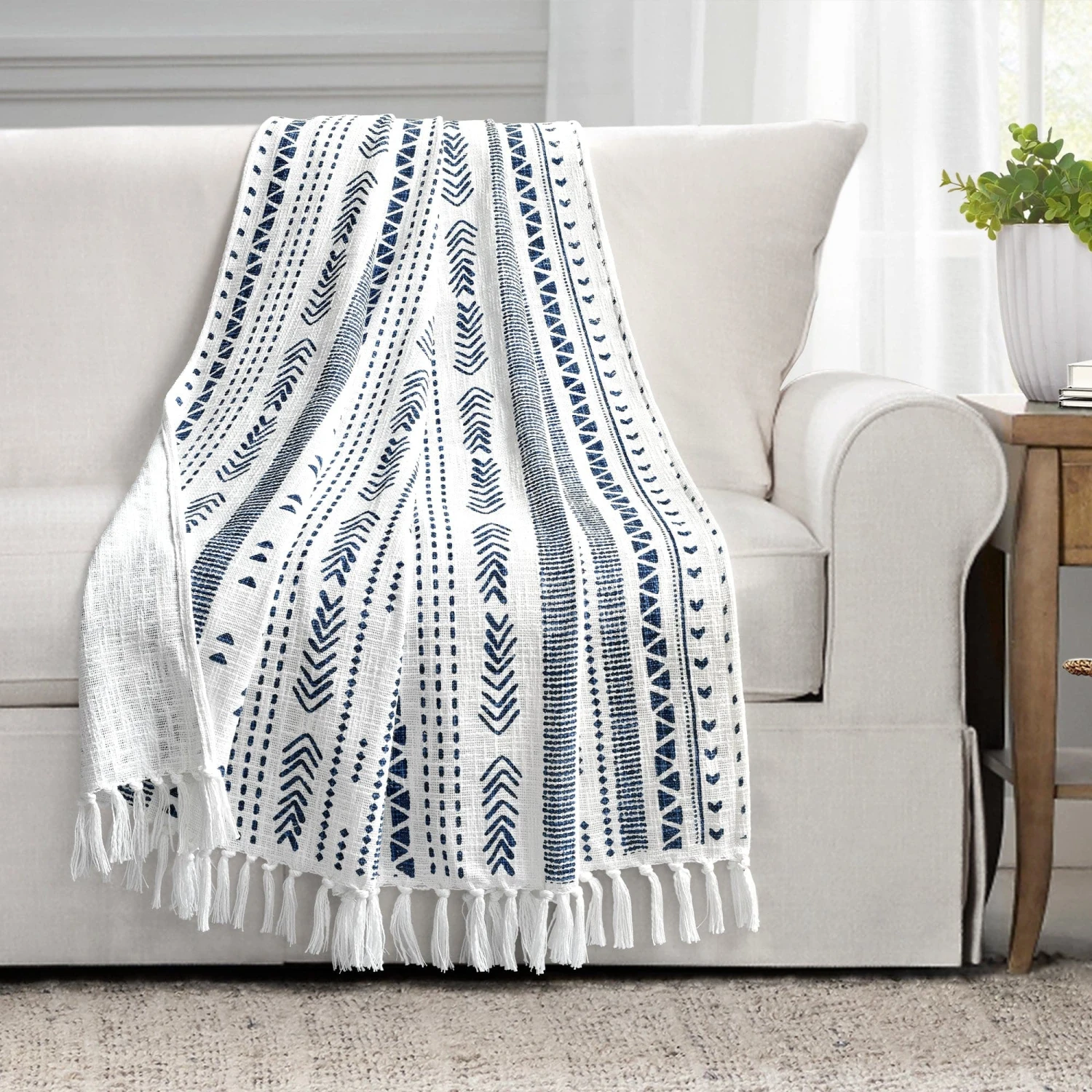 This throw would look great laid across the foot of a bed or the back of a sofa. The stripes that run the length of the throw feature various geometric designs for enhancing your space. Our Hygge Stripe Cotton Slub Tassel Fringe Throw is truly unique in the way it combines modern and vintage styles.
