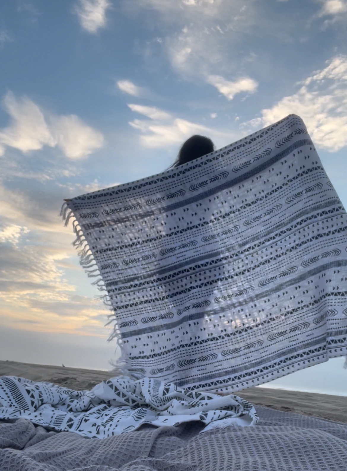 While not made for outdoor use (so always please bring it back inside), our Hygge Stripe Cotton Slub Tassel Fringe Throw is a great option for outdoor bonfires, trips to the beach and other fun excursions.