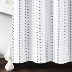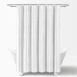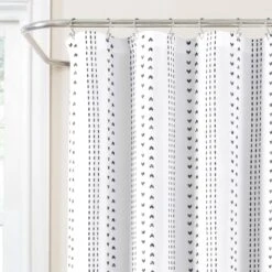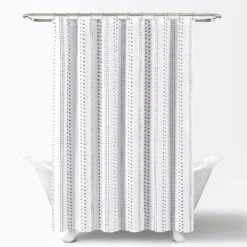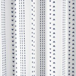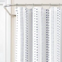 Measuring 72 inches long and 72 inches wide, the Hygge Stripe Shower Curtain will fit nearly any bathtub. It hangs easily with any standard shower curtain hooks or rings.