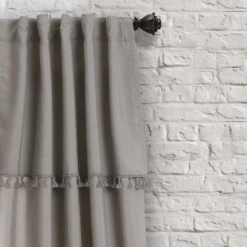 You have many options for hanging this Ivy Tassel Window Curtain Panel Set as it is made with a 3″ back tab rod pocket. So you can hang them with the back tabs, with the rod pocket, or with clips.
