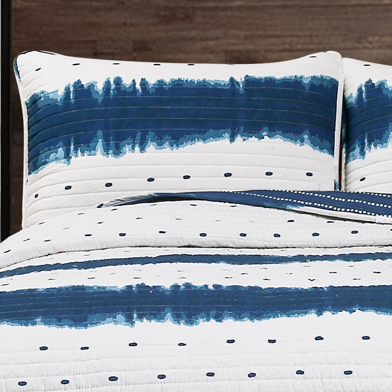 The combination of polka dots and unique stripes printed on 100% cotton create a vibrant look for any bedroom in your home. The Jane Shibori 3 Piece Quilt Set is reversible, allowing you to change the look of your room in seconds.