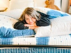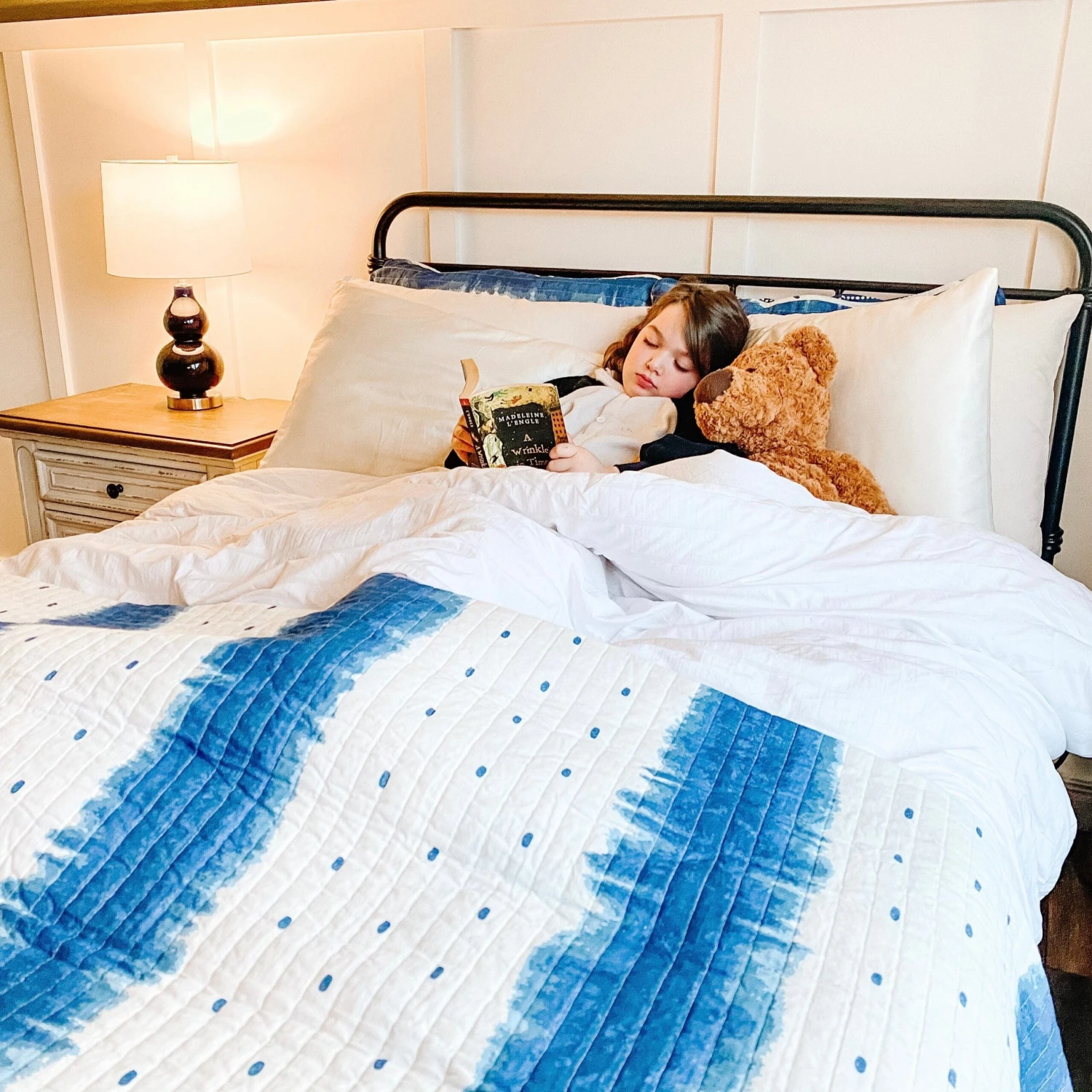 Either side of the Jane Shibori 3 Piece Quilt Set would work well in a coastal themed bedroom. In fact, this quilt set was used in the This Old House Cottage on the Cape Idea House in 2020. Every room in the home was given a coastal look.