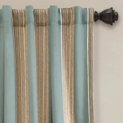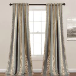 Our Julia Stripe Light Filtering Window Curtains Set is sold by the pair. Each panel measures 52 inches wide and is available in your choice of lengths, including 84 inches, 95 inches or 108 inches long. Some colors may not be offered in all sizes. Their room darkening capabilities help filter some of the light and heat out of your room.